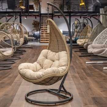 מעמד אפור, ראטן חום אפור, ריפוד צבע שמנת. אזל המלאי.