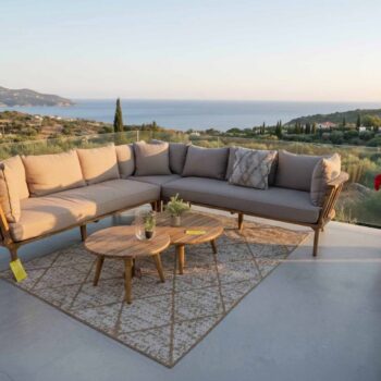 המערכת מורכבת מזוג ספות גדולות, ספה פינתית וזוג שולחנות עגולים.