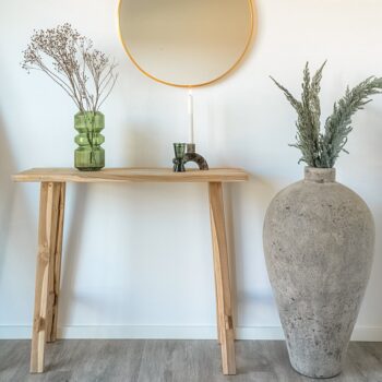 קונסולה מעוצבת המתאימה לחללים קטנים ובנויה מעץ טיק.