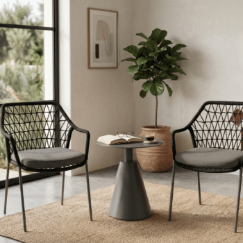 הסט כולל זוג כיסאות לופ ושולחן קפה מדגם לורן.
