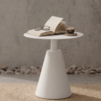 שולחן צד עשוי אלומיניום, בעיצוב יוקרתי.