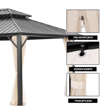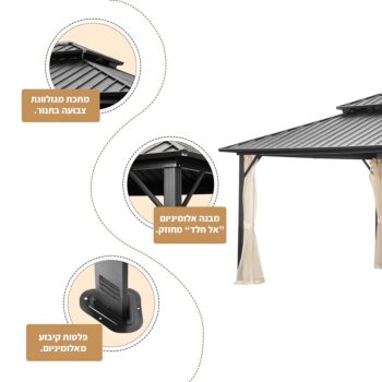 גזיבו אלומיניום מפואר ומחוזק לגינה / למרפסת.