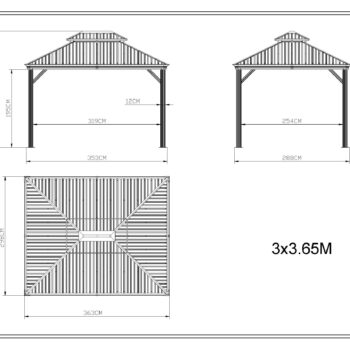 גזיבו אלומיניום דגם קנזס דלוקס 3X3.65 מטר