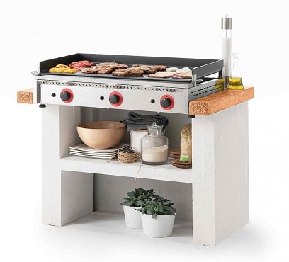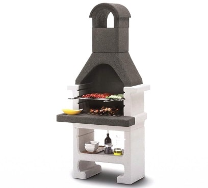 מבנה הגריל עשוי מחומר מיוחד דחוס ועמיד (שיש MARMOTECH), בצבע לבן אפרפר בשילוב קרם אדמדם.