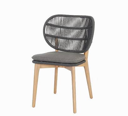 הכיסא בנוי משלדת עץ שיטה מלא בגימור טיק מיושן, שילוב של מסגרת אלומיניום “אל חלד” וחבלים סינטטיים.