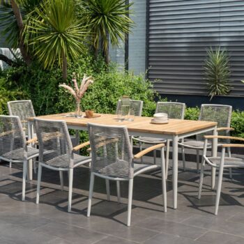 שזירת החבלים מעניקה לכיסא מראה ייחודי ומעודכן, והגב המשופע מעוצב לנוחות אופטימלית גם בישיבה ממושכת.