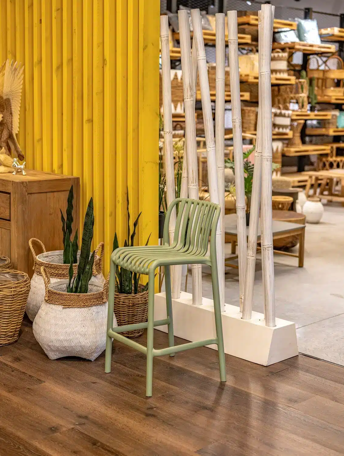 כיסא בר מעוצב עשוי פלסטיק קשיח ומסיבי.
