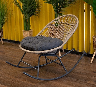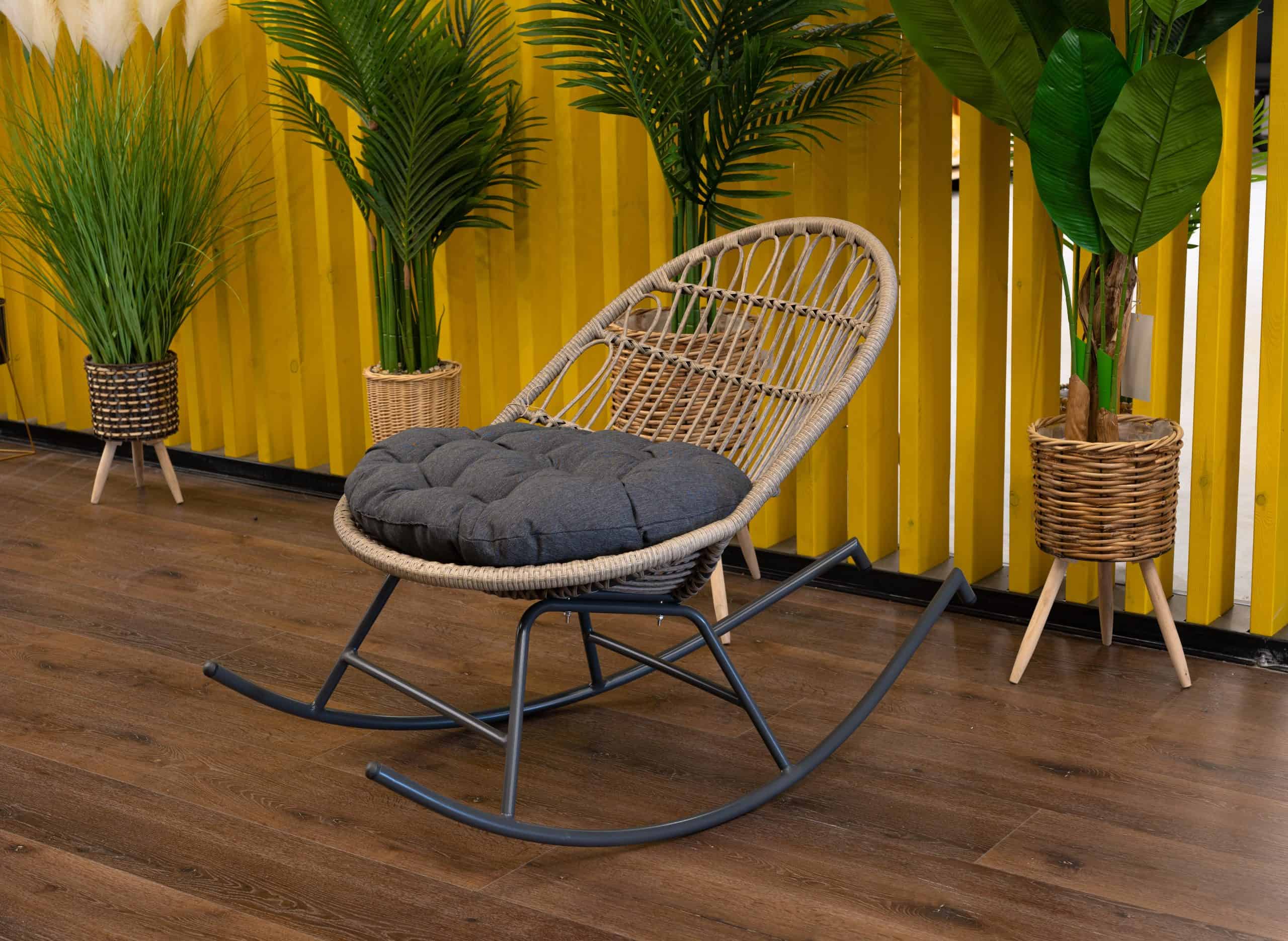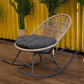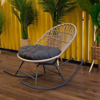 כיסא נדנדה מעוצב הבנוי משלדת אלומיניום בחיפוי ראטן סינטטי.