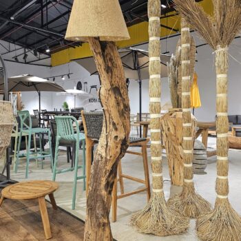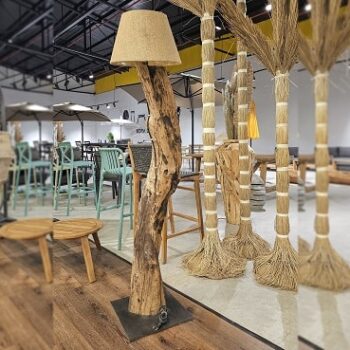 מנורה מגזע עץ טיק טבעי, כולל מעמד ואהיל