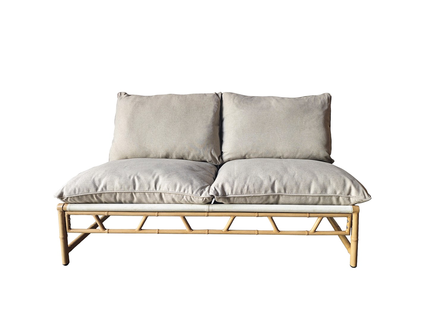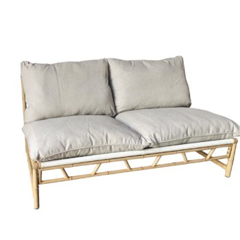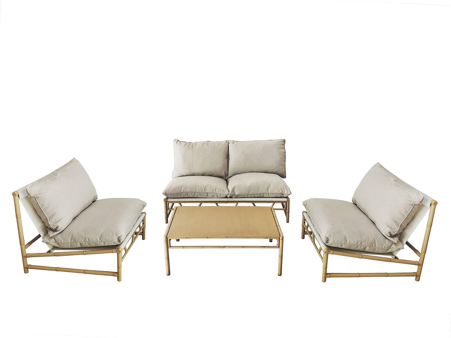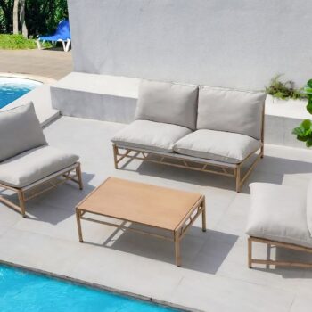 סט סלון חוץ בעיצוב טבעי ועדכני, המשלב מראה במבוק חמים עם קווים נקיים.
