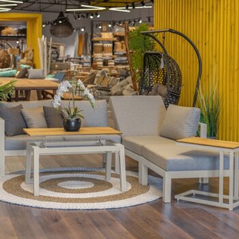 מערכת ישיבה פינתית מאלומיניום “אל חלד” בשילוב ריפודים רחיצים.