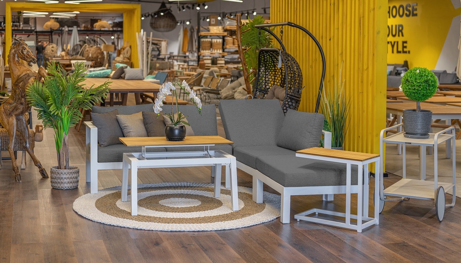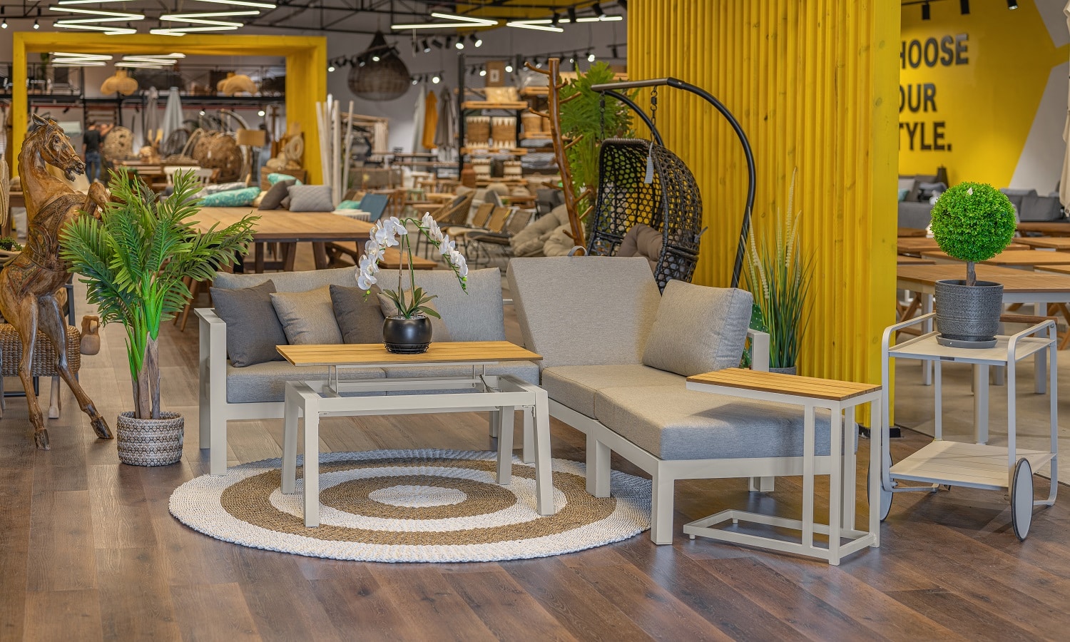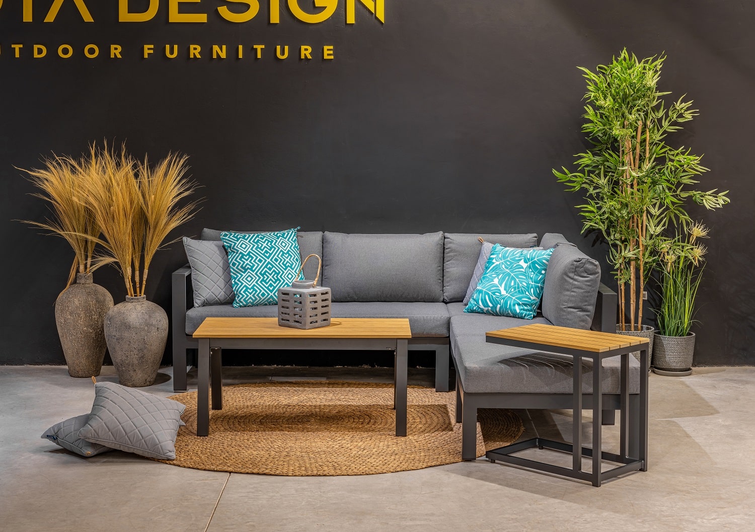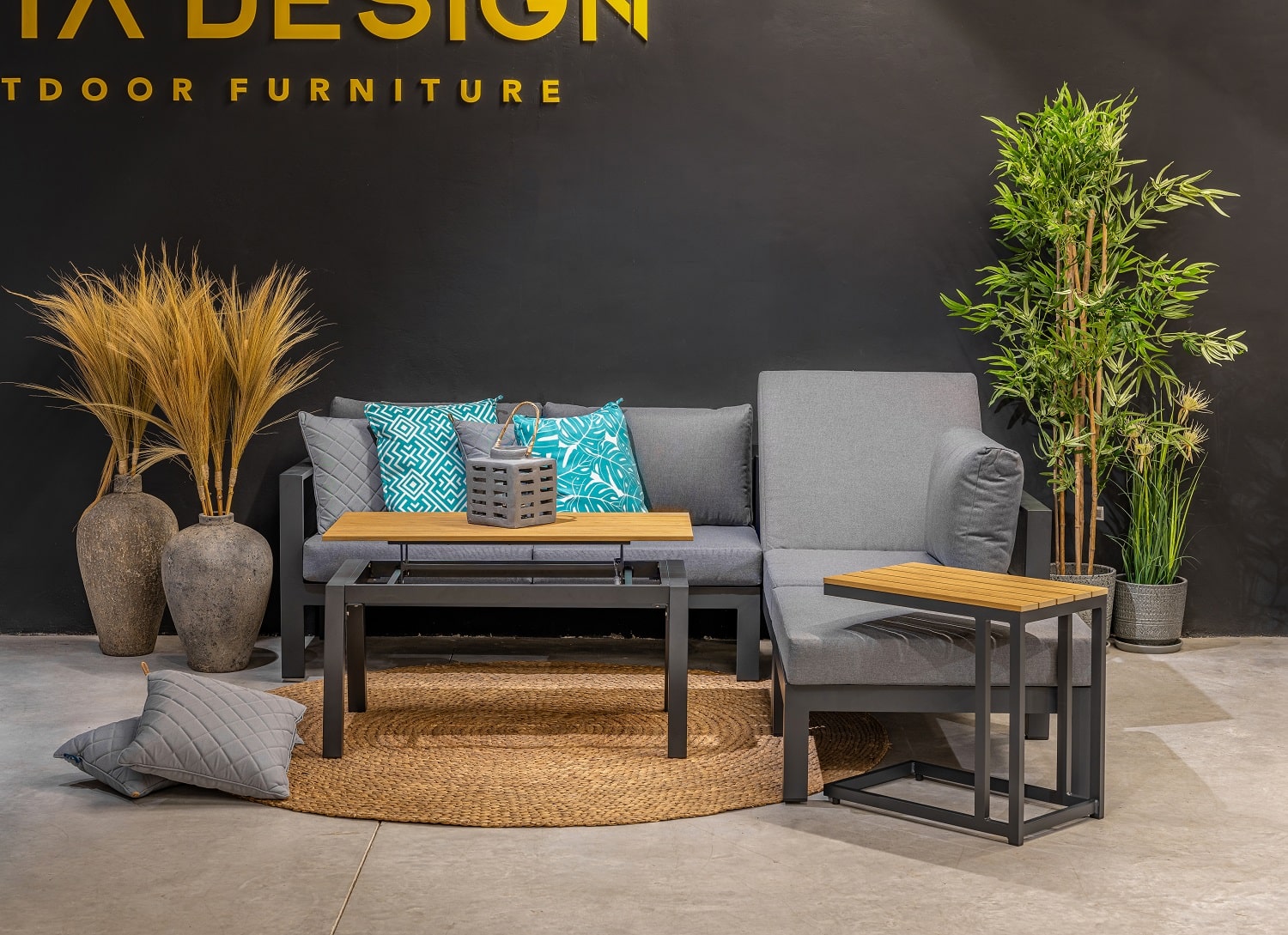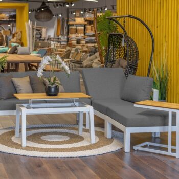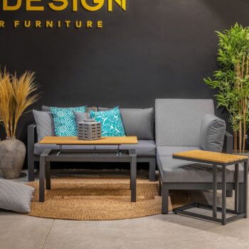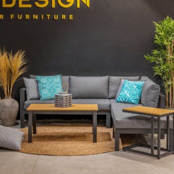 מערכת ישיבה פינתית מאלומיניום “אל חלד” בשילוב ריפודים רחיצים.
