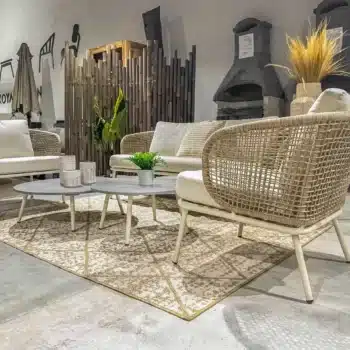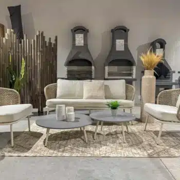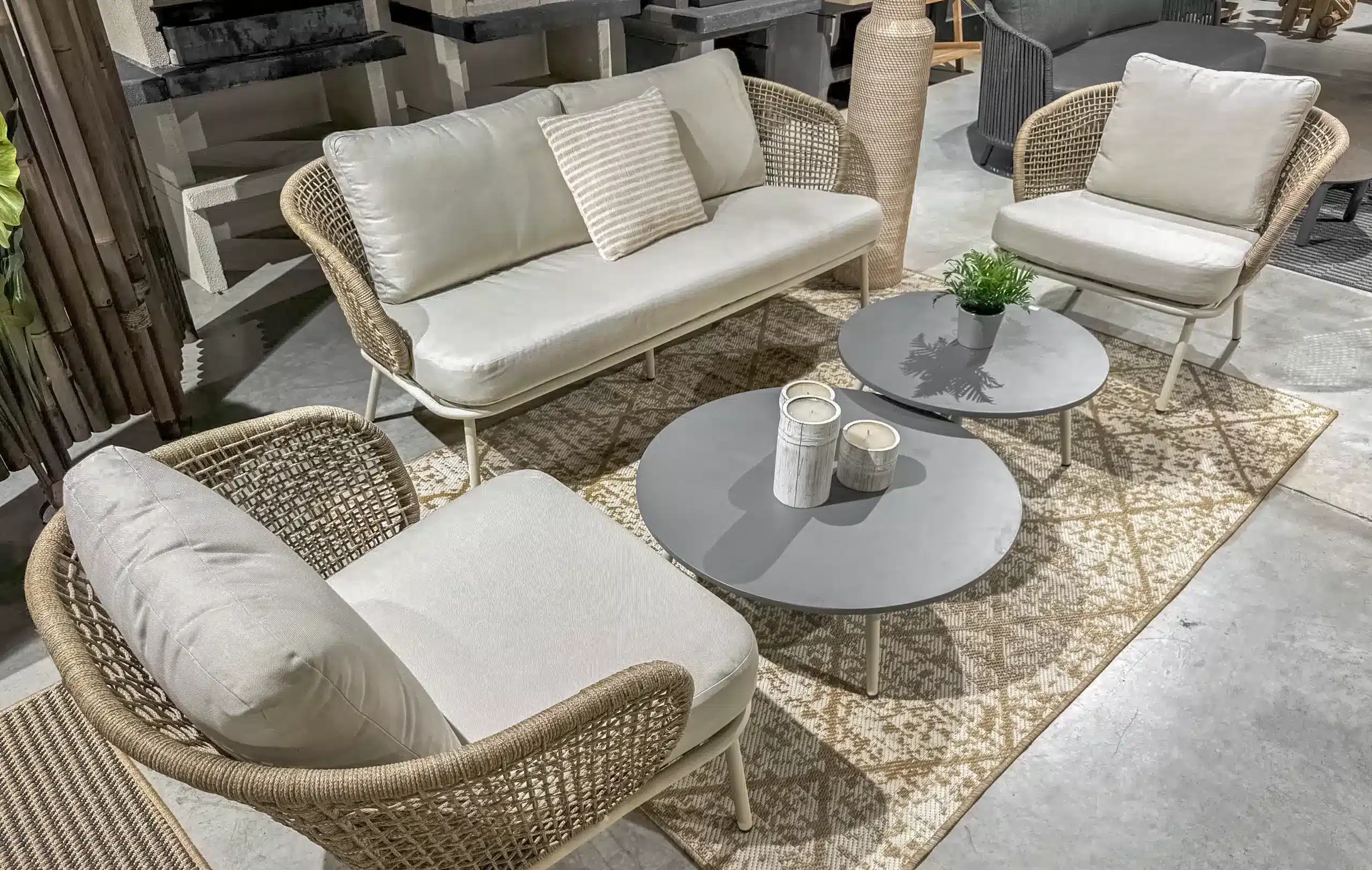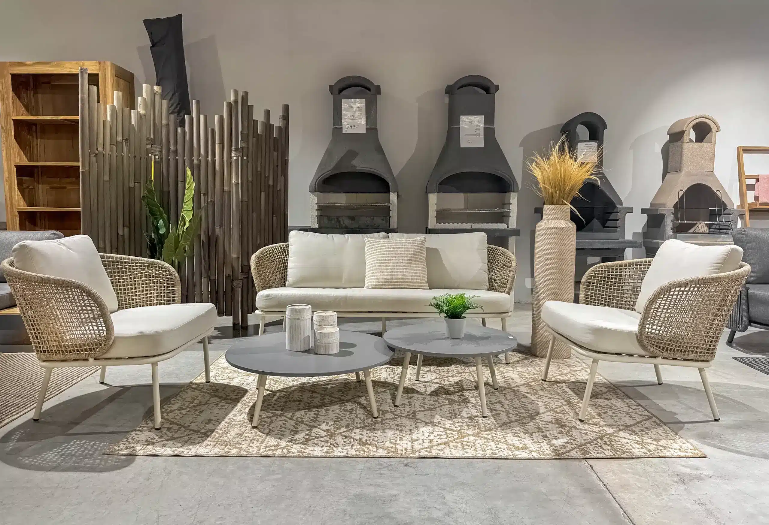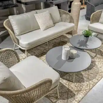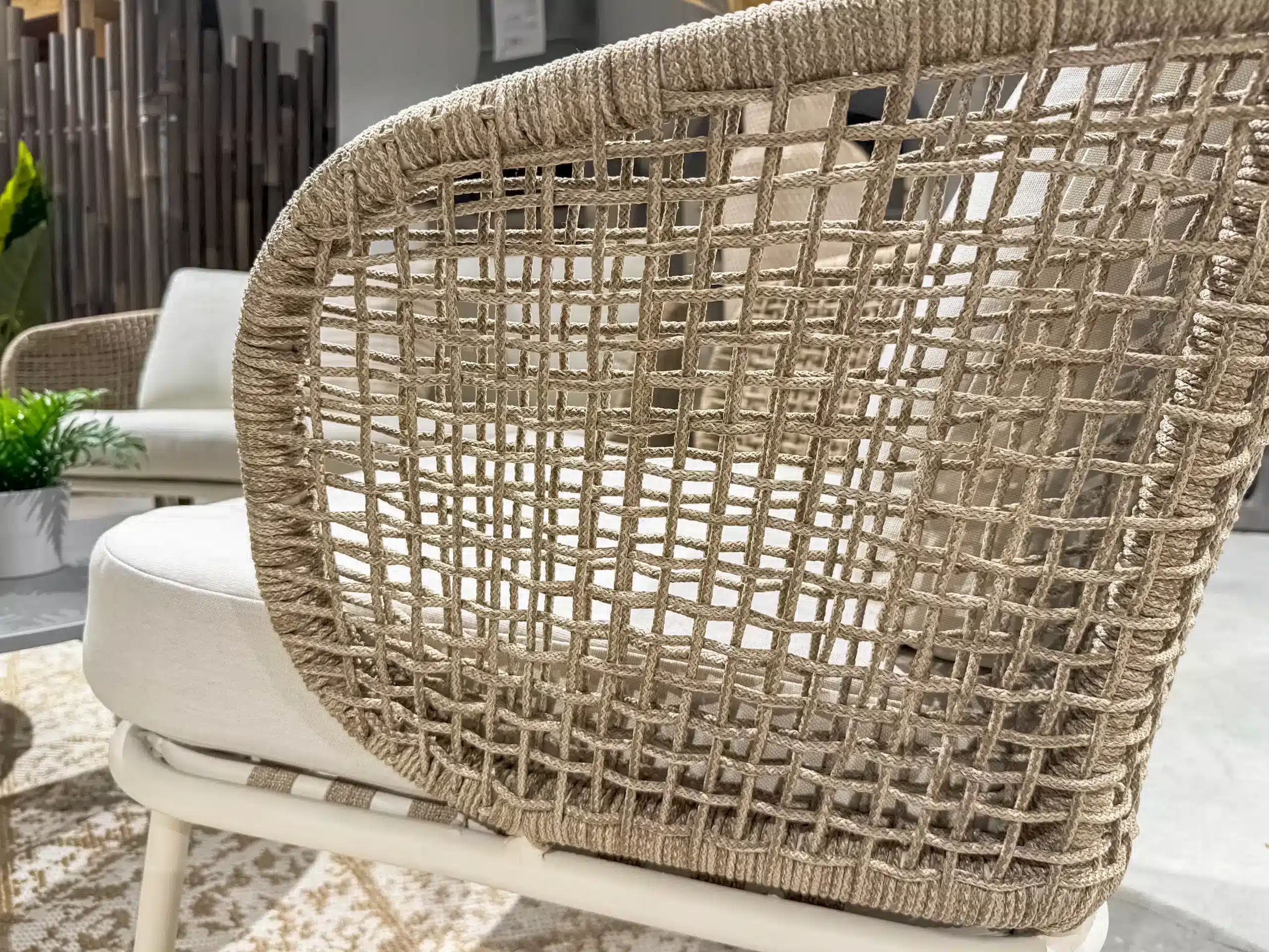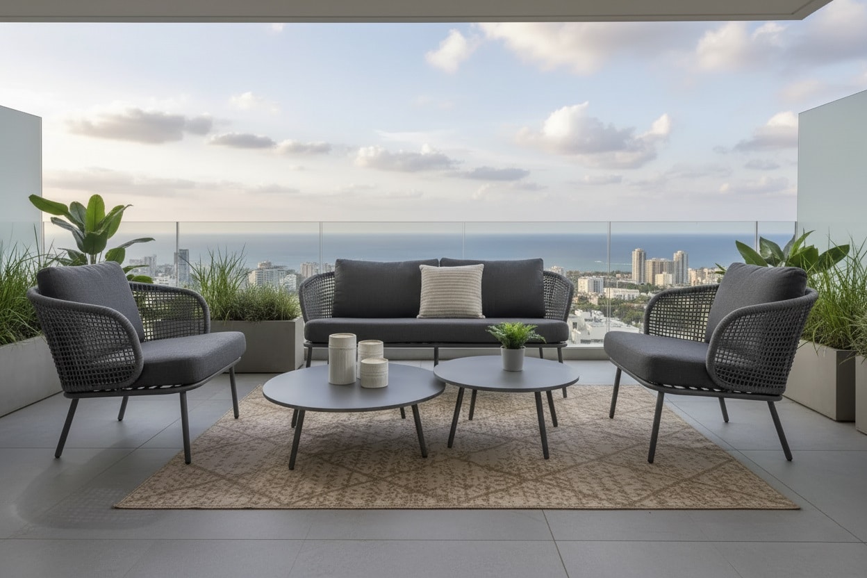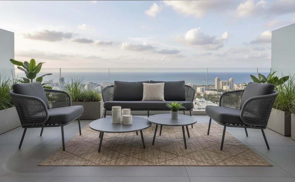 מערכת ישיבה מפוארת הבנויה משלדת אלומיניום “אל חלד” בשילוב חבלי נאוטיקה עמידים לחוץ.