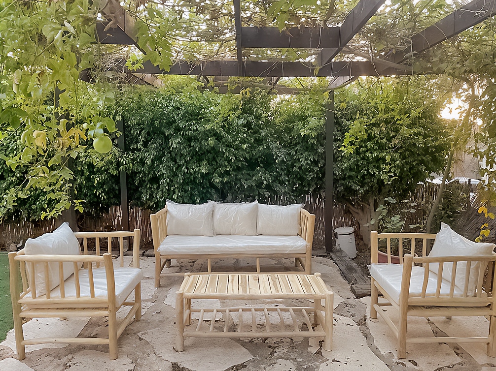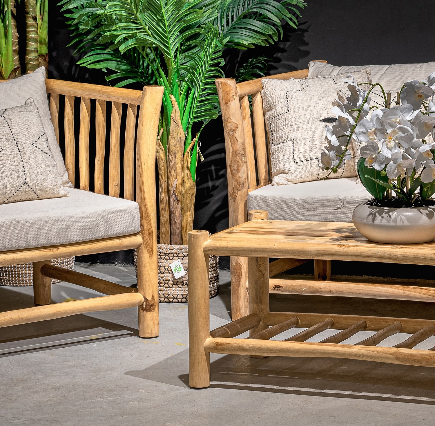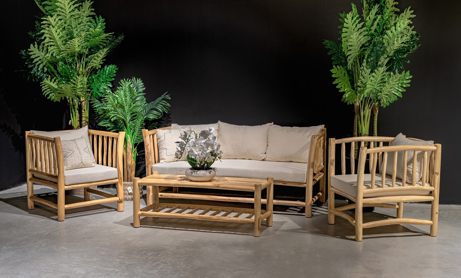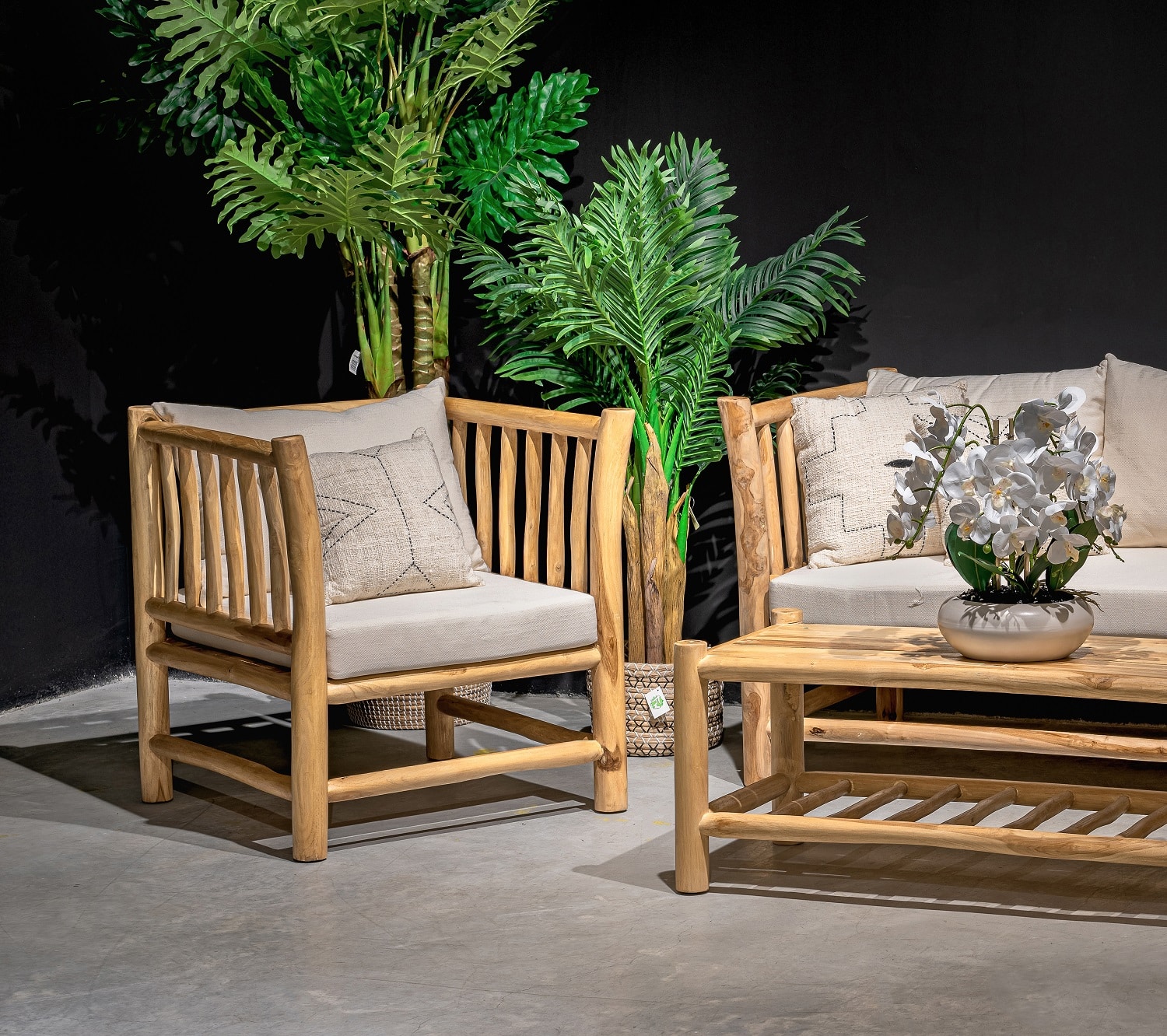 המערכת בנויה מגזעי טיק בשילוב ריפוד רחיץ .