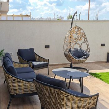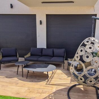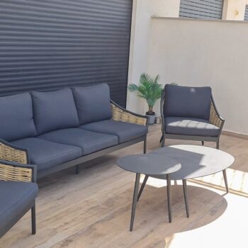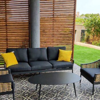 אלומיניום שחור, ראטן דמוי טבעי, ריפוד שחור. אזל המלאי.