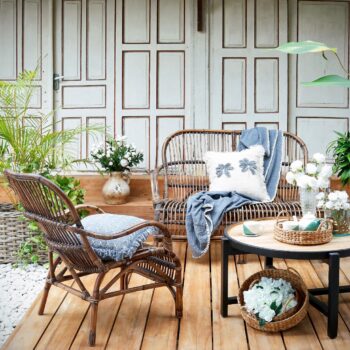 מערכת ישיבה מעוצבת הבנויה מראטן טבעי תוצרת אינדונזיה.