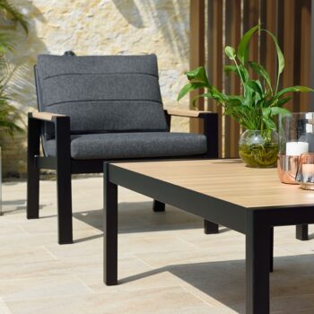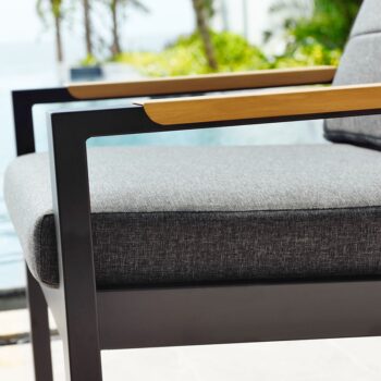 המערכת בנויה משלדת אלומיניום “אל חלד” בשילוב משענות ידיים וחיפוי (למינציה) שולחן דמוי עץ טיק.