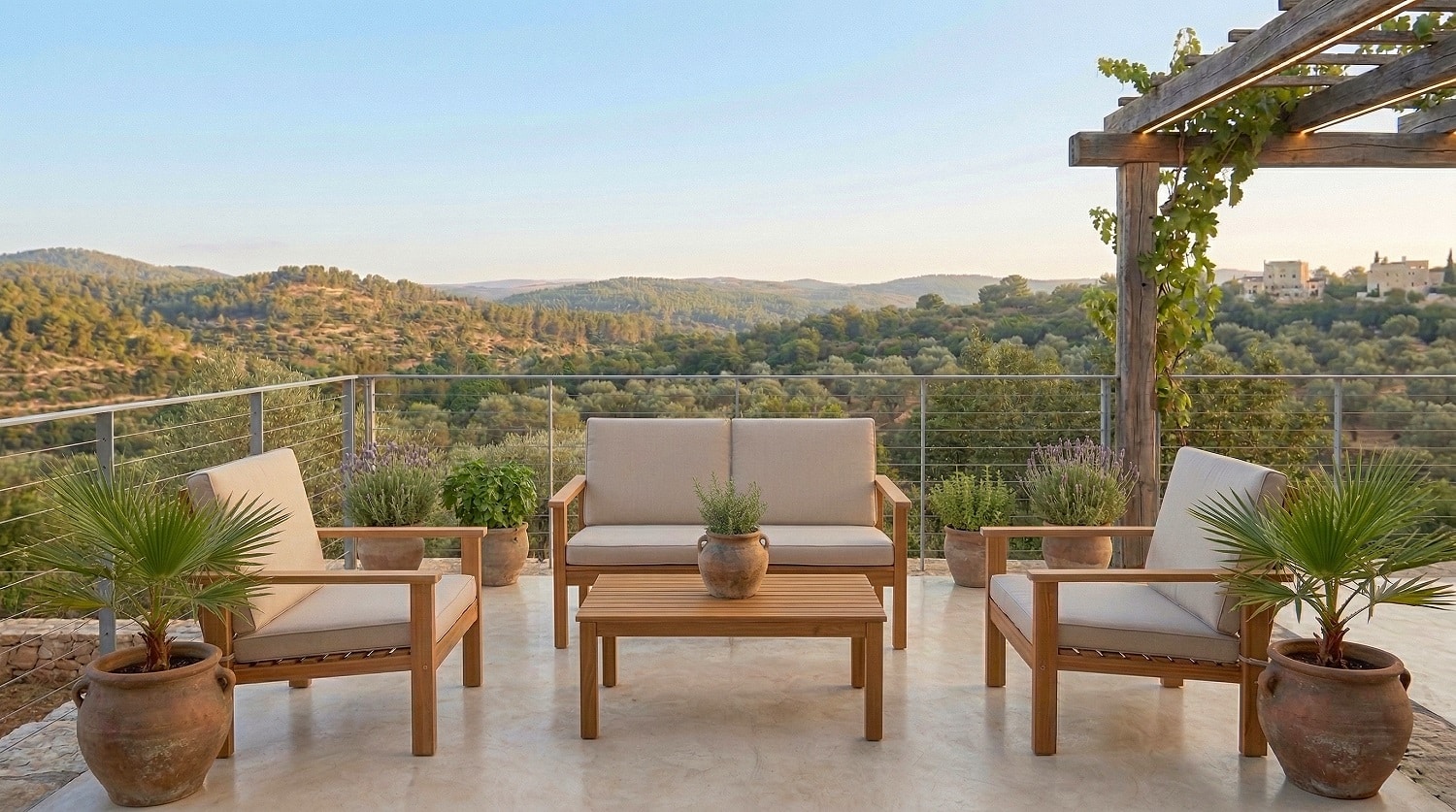 מערכת ישיבה לגינה מעץ שיטה מלא ואיכותי.