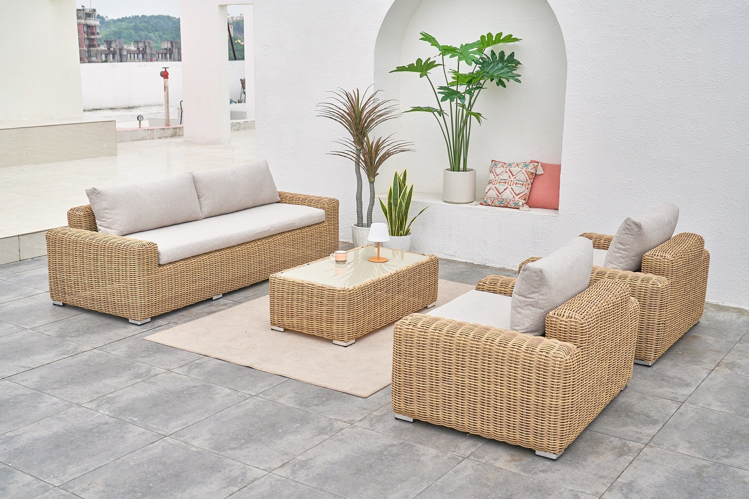 צבעים: ראטן דמוי טבעי, ריפוד קרם אפרפר.