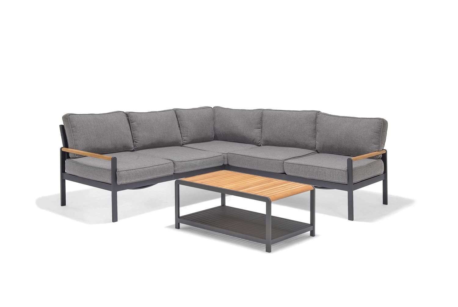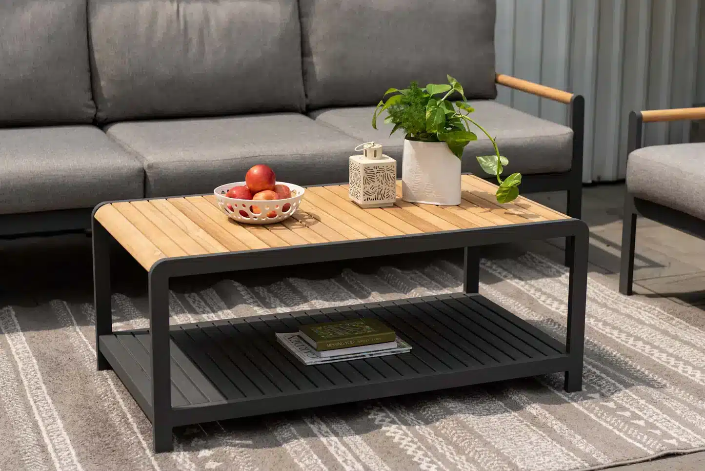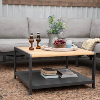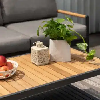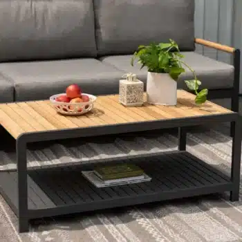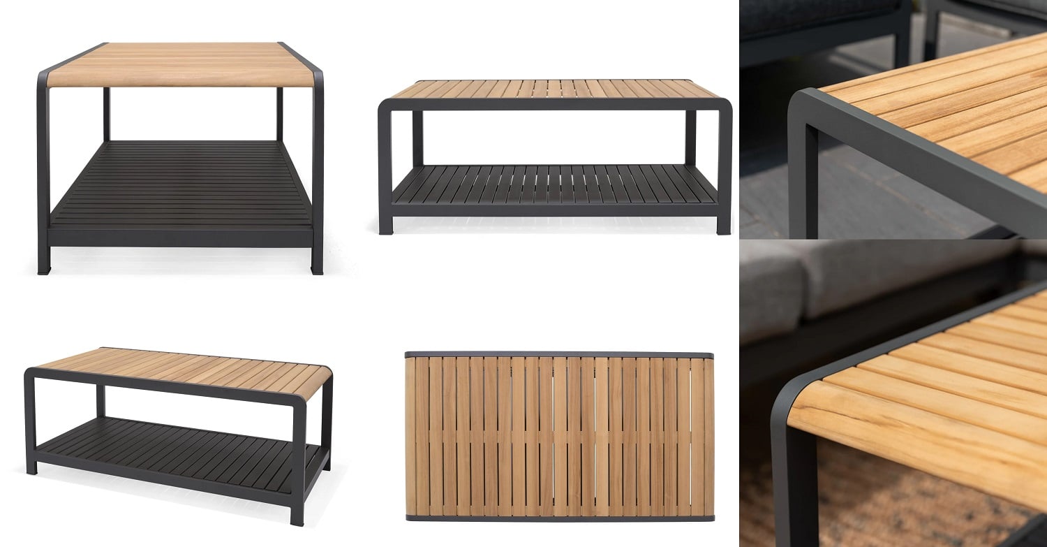 שולחן אלומיניום מלבני בשילוב לוחות עץ טיק.