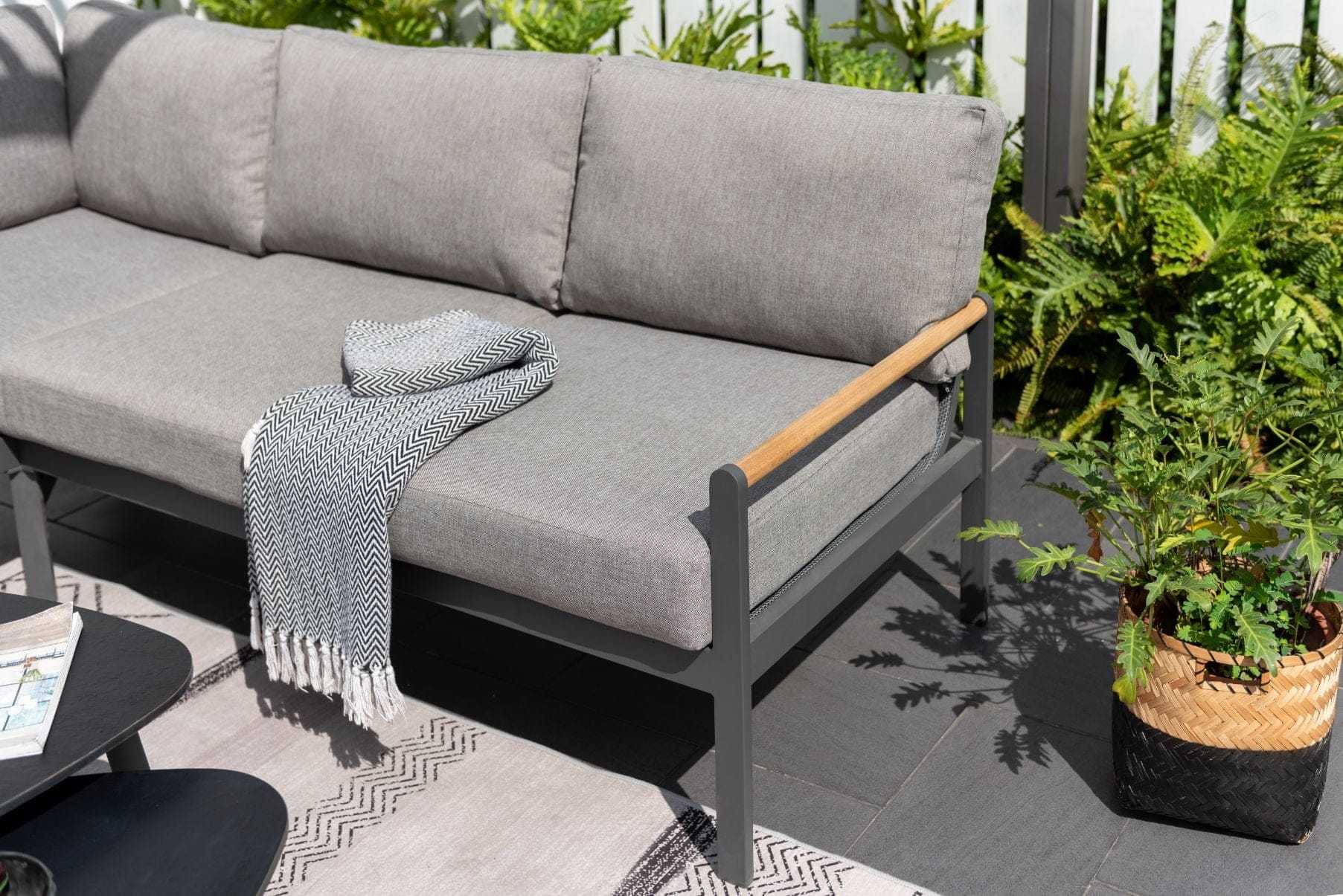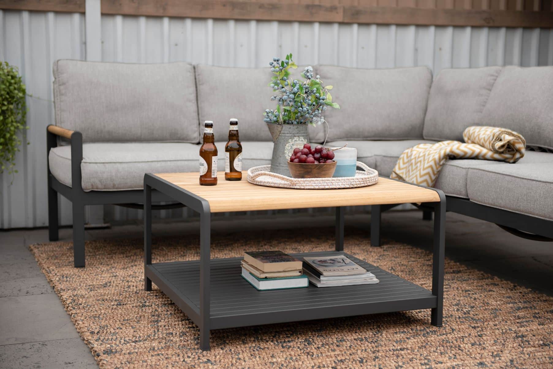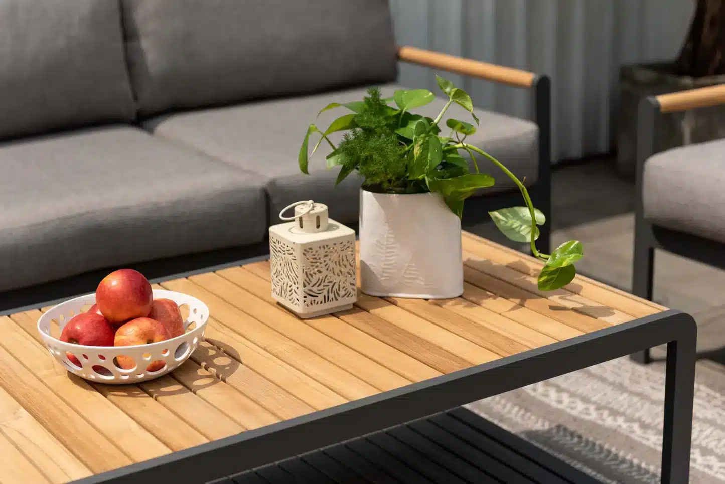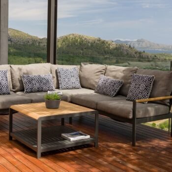 שולחן אלומיניום מלבני בשילוב לוחות עץ טיק.