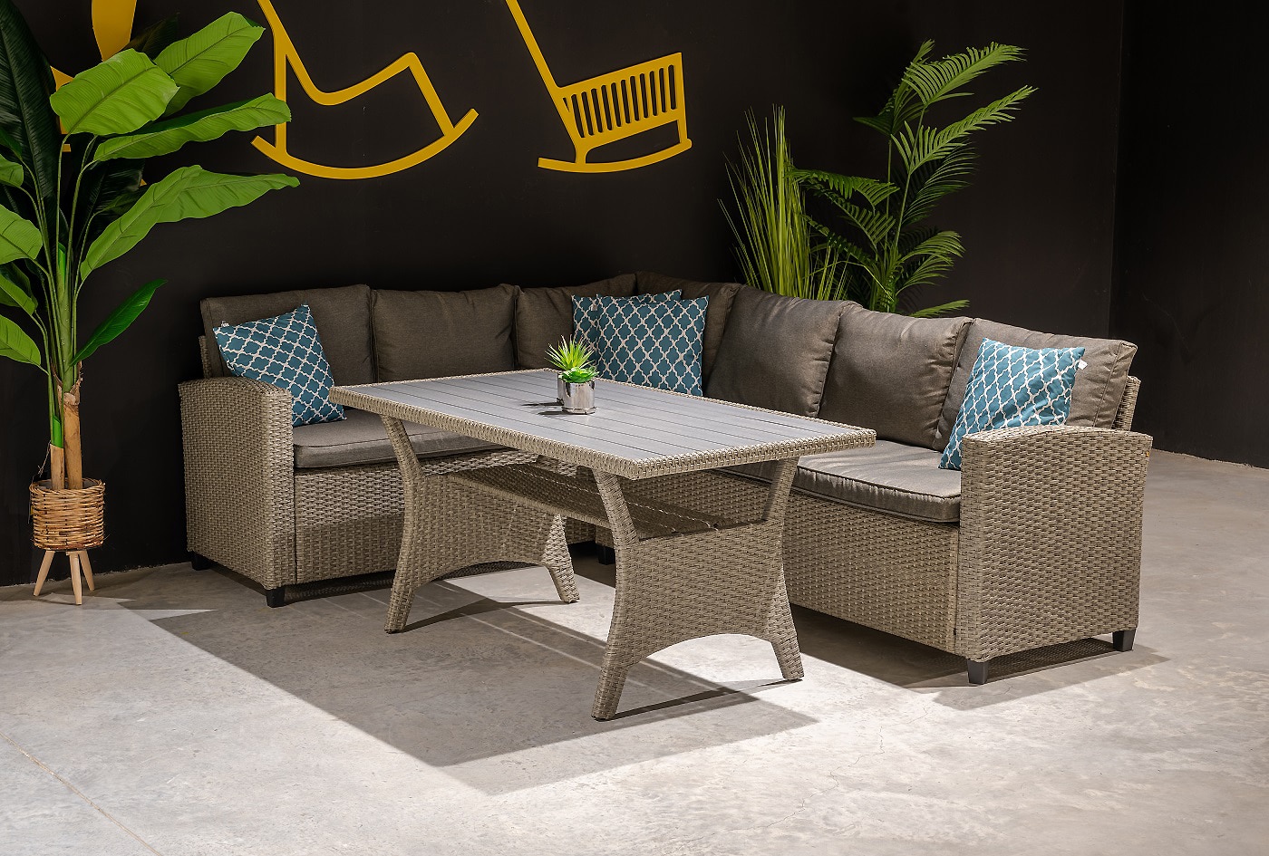 מערכת ישיבה נוחה ומפנקת הבנויה משלדת מתכת צבועה באפוקסי ובחיפוי ראטן סינטטי עשוי PVC.