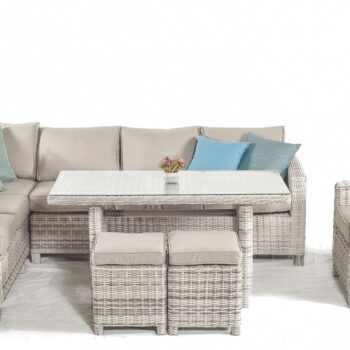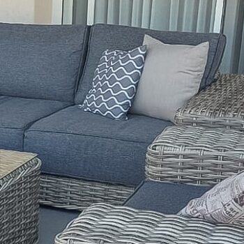 מערכת ישיבה מפוארת הבנויה מראטן עגול בשילוב ריפוד אוליפן רחיץ.