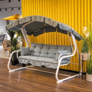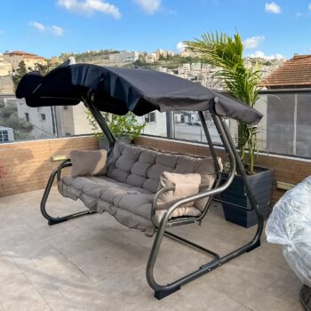 שלדה לבנה, בד אפור תכלת בהיר וגג אפור. אזל זמנית.