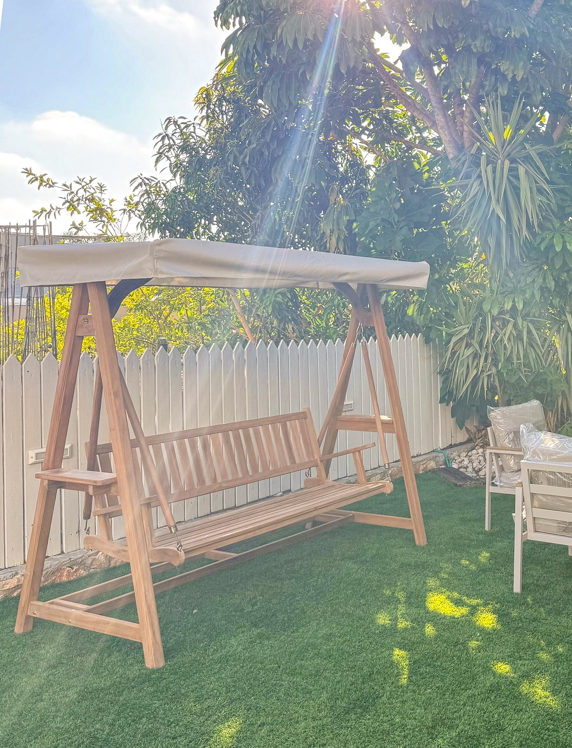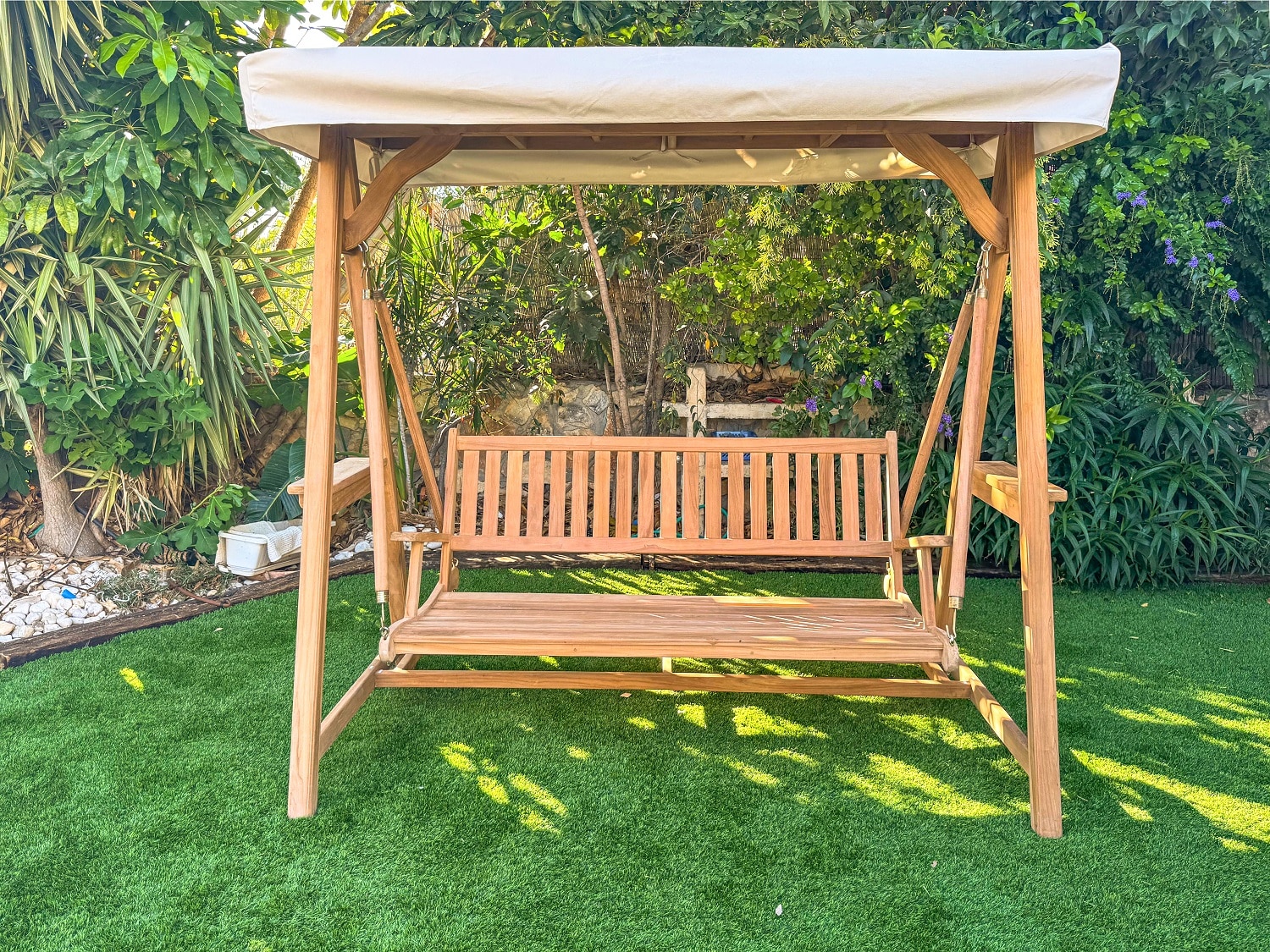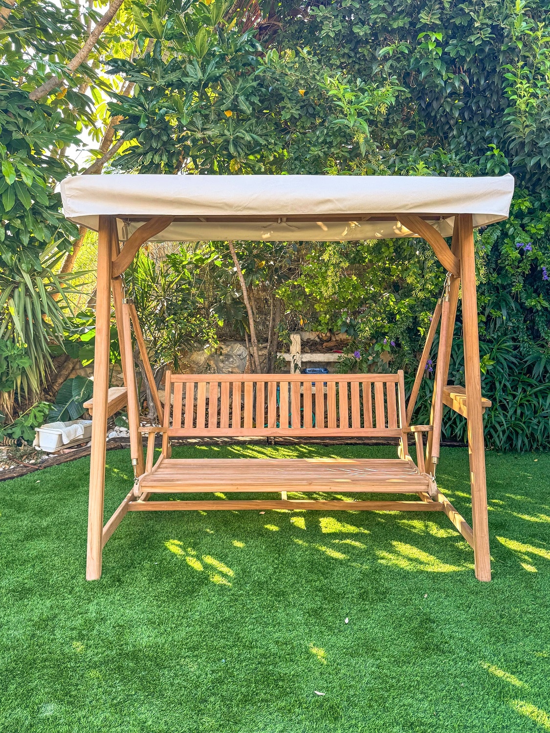 נדנדה מעץ טיק תוצרת אינדונזיה.