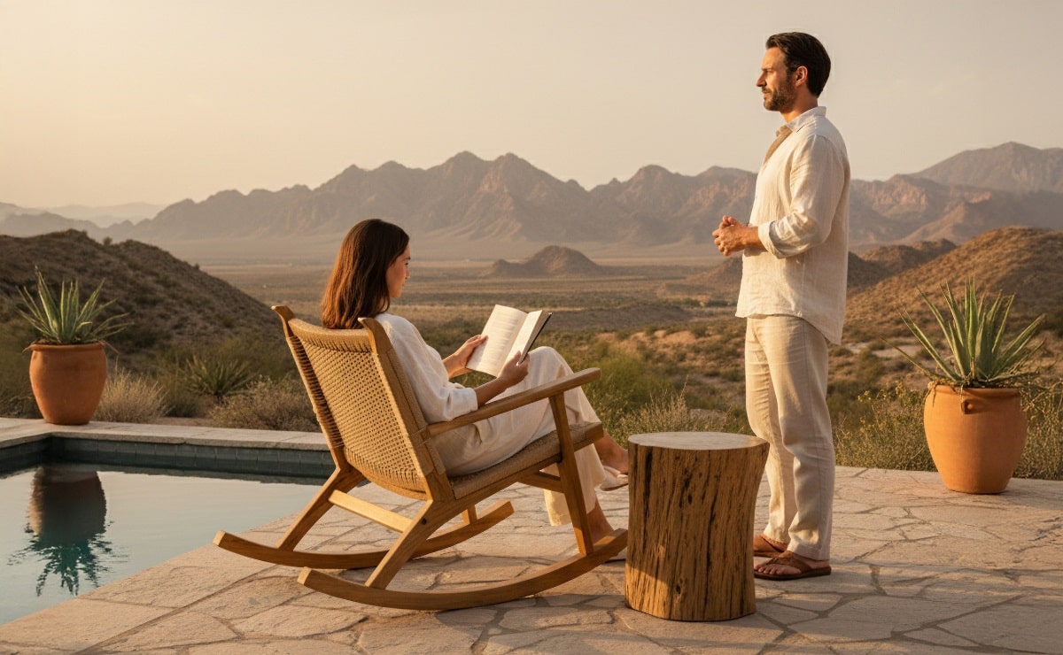 נדנדה מעוצבת הבנויה מעץ טיק דירוג A.