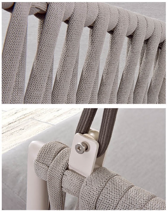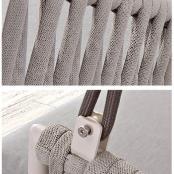 צבע: מסגרת אפור חול, חבלים קרם אפרפר, ריפוד קרם אפרפר.