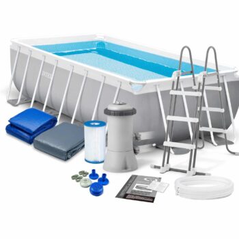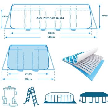 בריכת אינטקס במידה 488X244X107 ס”מ הכוללת משאבת פילטר 1000 גלון, סולם בטיחותי, כיסוי עליון ותחתון.