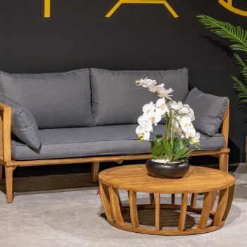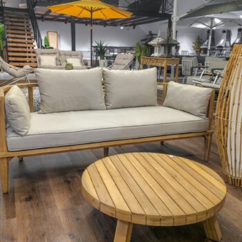 הספה בנויה מעץ שיטה מלא בגימור טיק.
