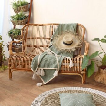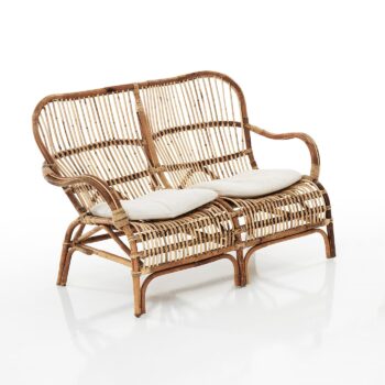 ספה זוגית מעוצבת הבנויה מראטן טבעי תוצרת אינדונזיה.