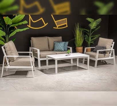 צבעים: ריפוד אפור בהיר, צבע אלומיניום לבן, אפור כהה או צבע אבן (אוף ווייט).