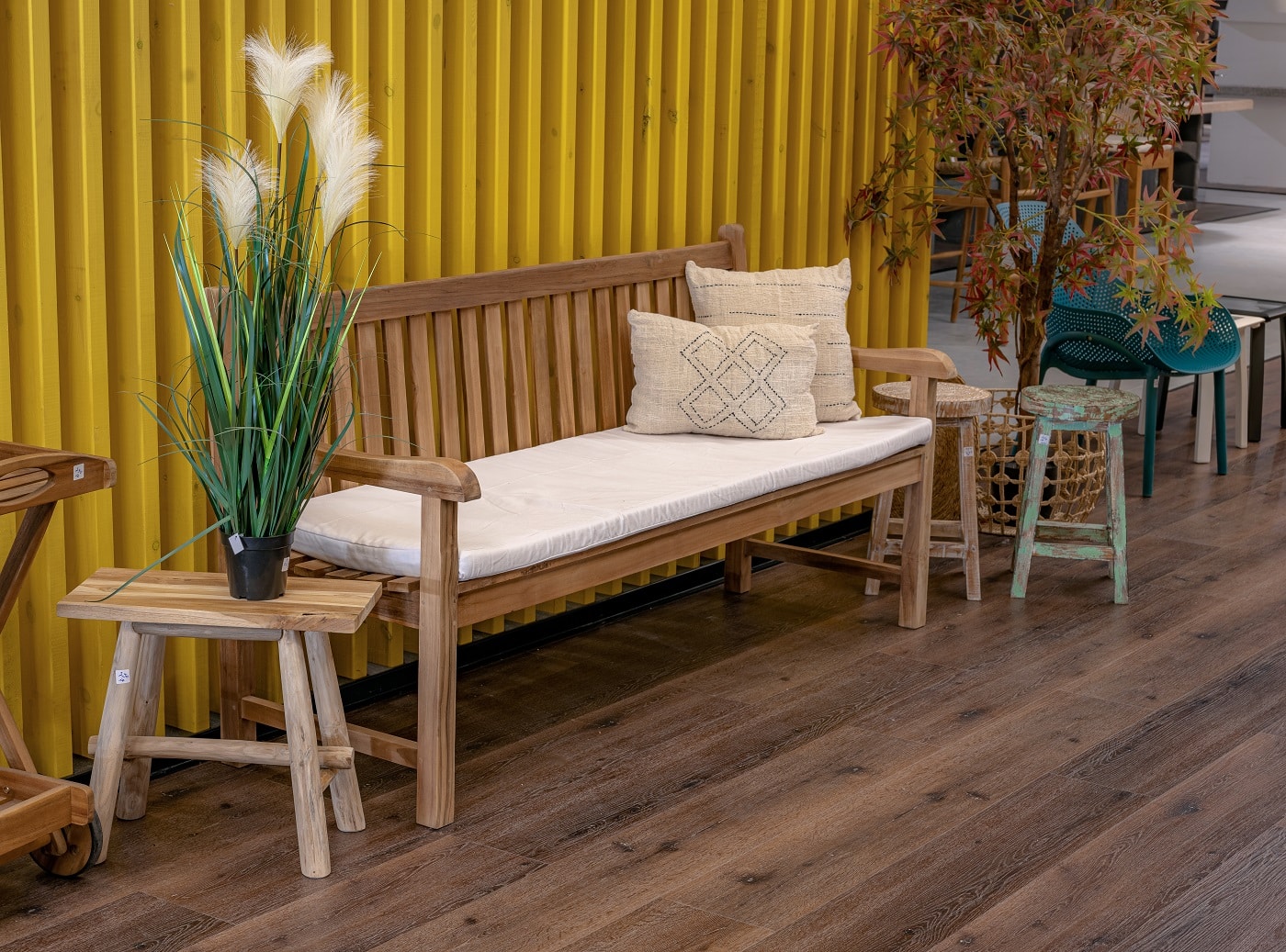 ספסל מרשים וחזק במיוחד הבנוי מעץ טיק אינדונזי.