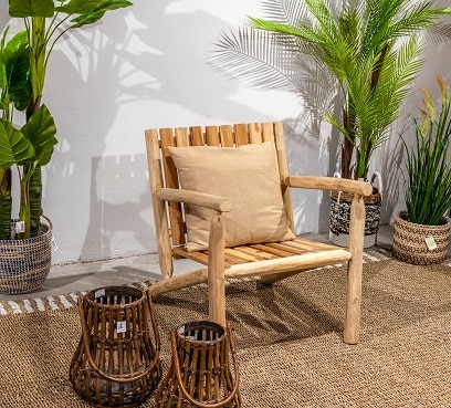 ספה מעוצבת המורכבת הבנויה מענפי טיק.
