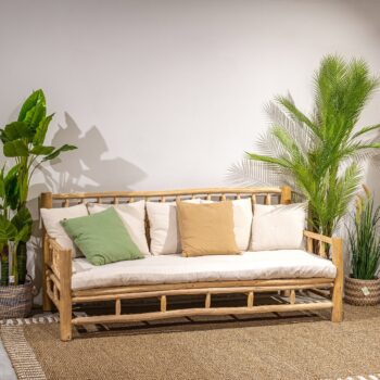 ספת תלת מפוארת הבנויה מגזעי טיק בשילוב ריפוד רחיץ.