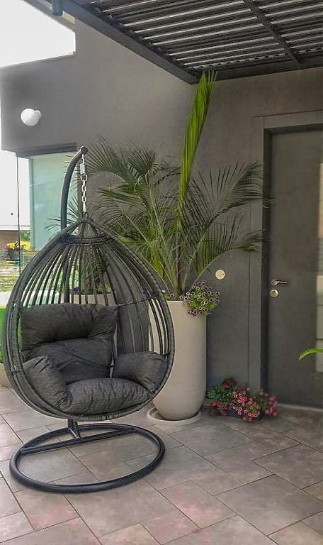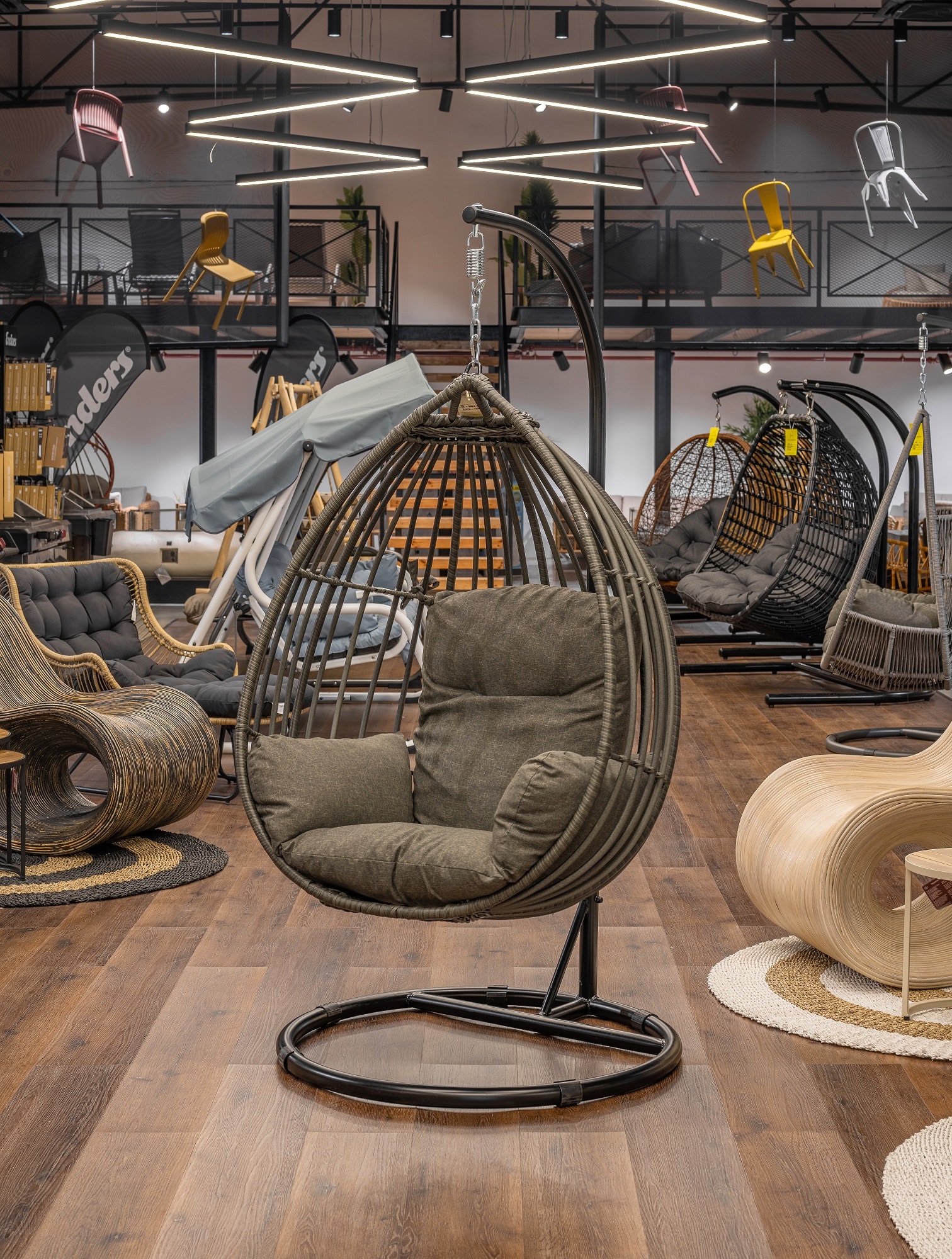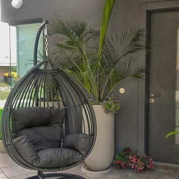מעמד שחור, ראטן אפור כהה, ריפוד אפור כהה.