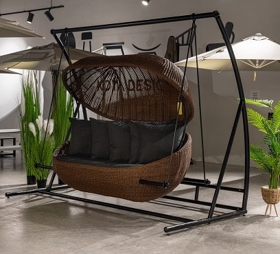 שלדת הערסל בנויה מאלומיניום “אל חלד” בחיפוי ראטן סינטטי עגול עבה עשוי PVC.