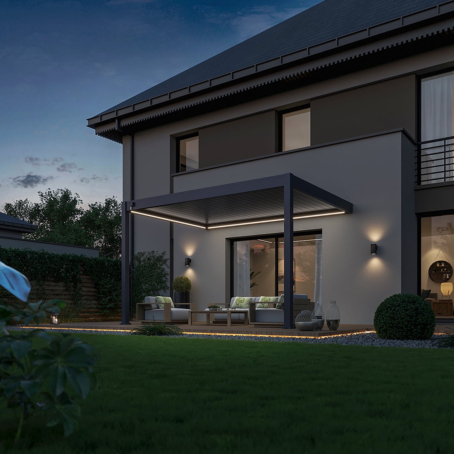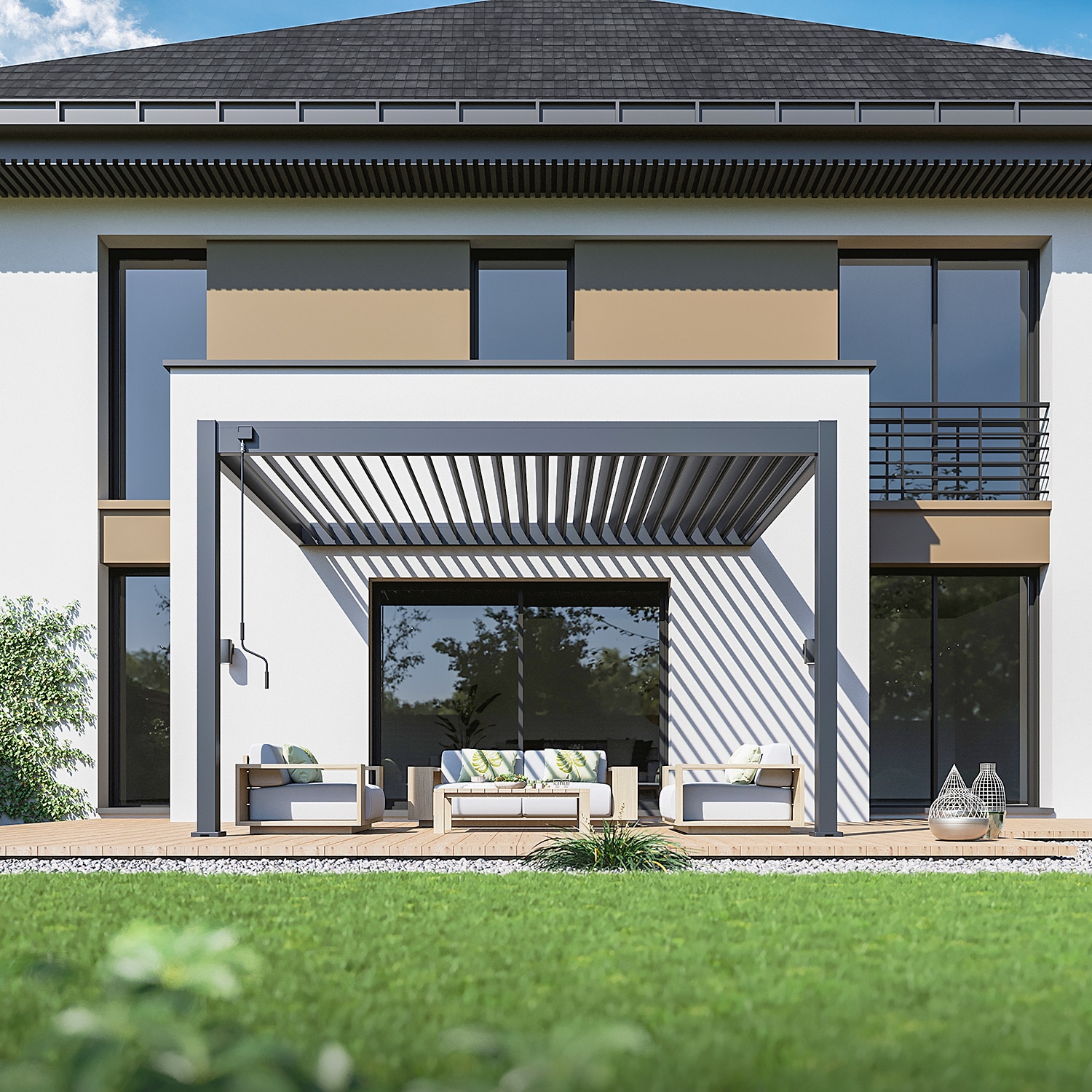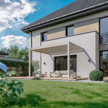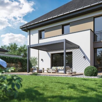 פרגולה חזקה ועמידה במיוחד הבנויה מאלומיניום בשילוב רפפה עשויה מאלומיניום “אל חלד”.