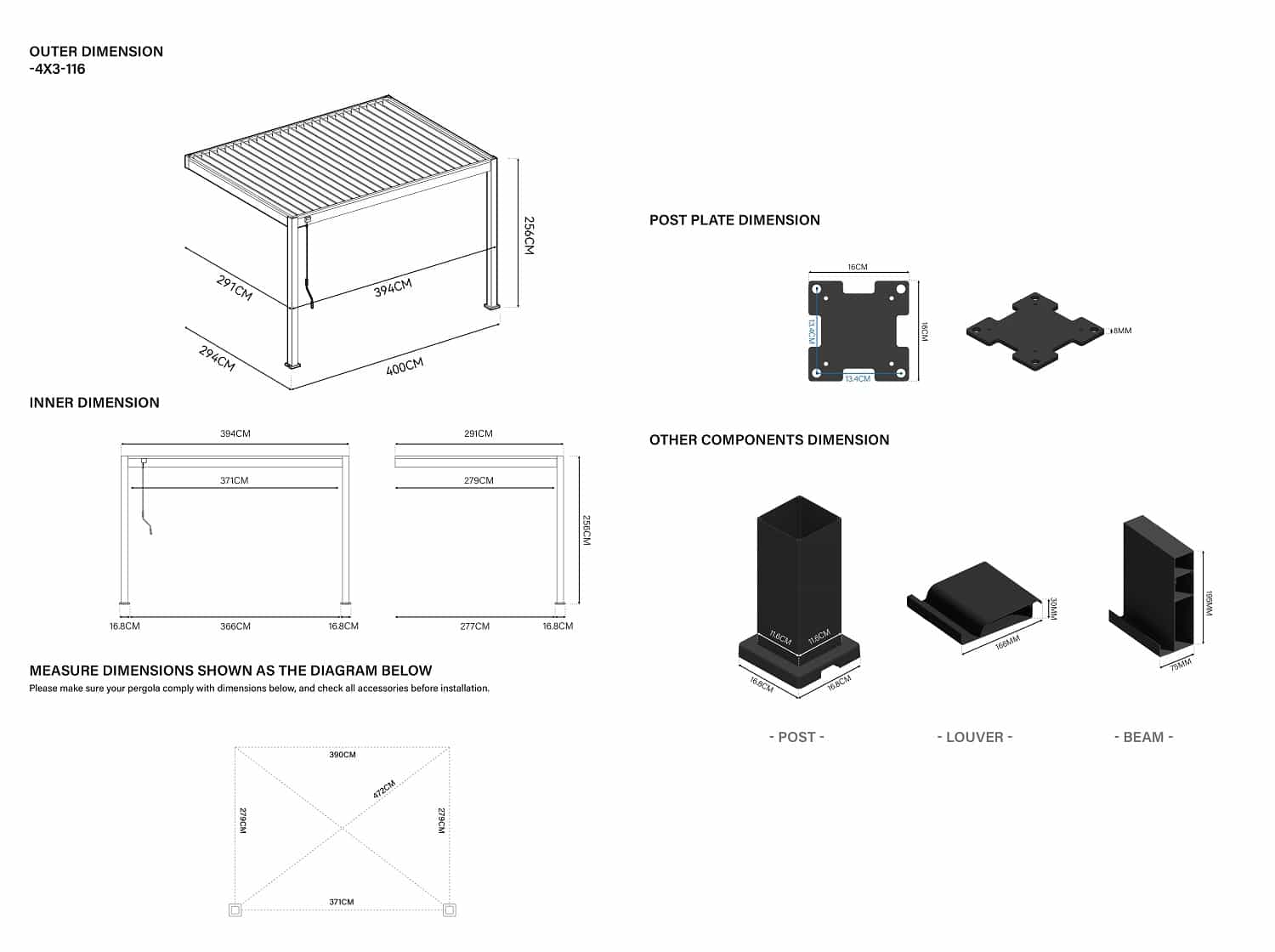 עמודים 116X116 מ”מ.