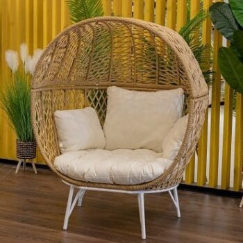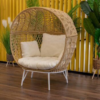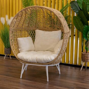 שלדה לבנה, ראטן דמוי טבעי וריפוד לבן קרם.