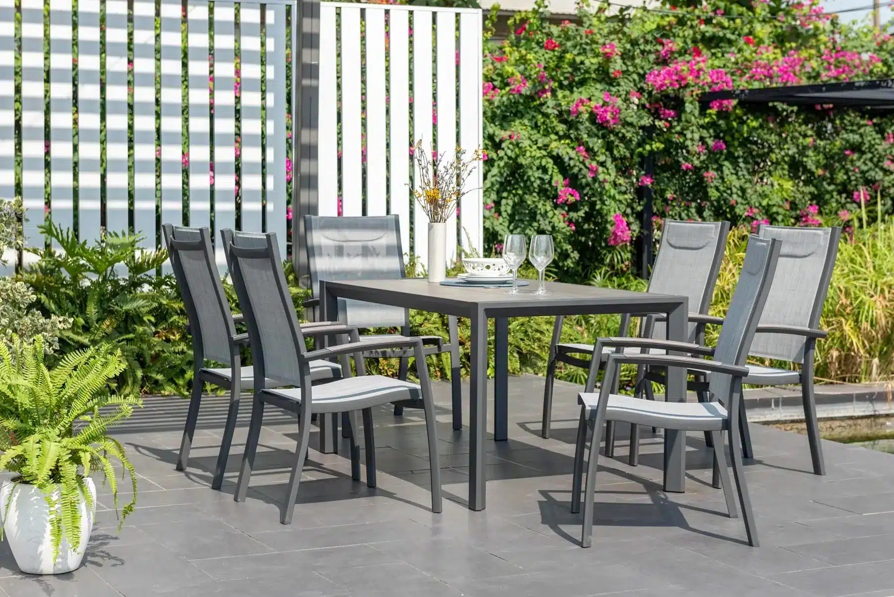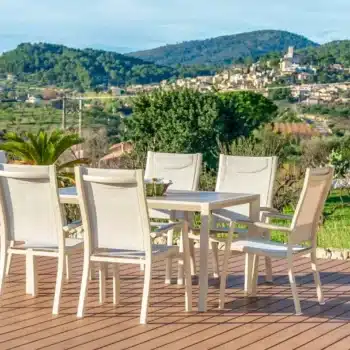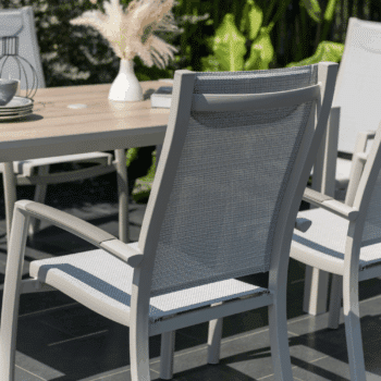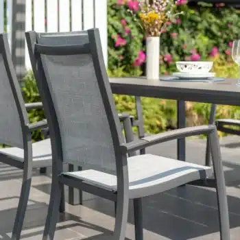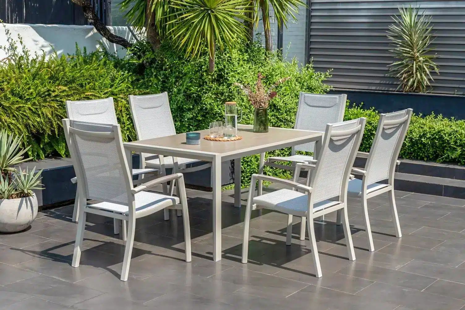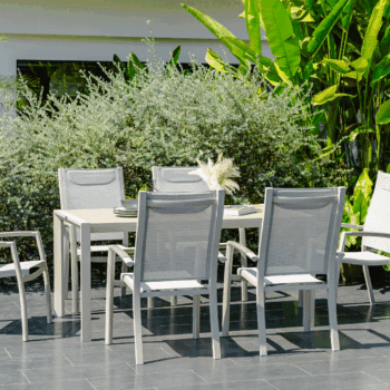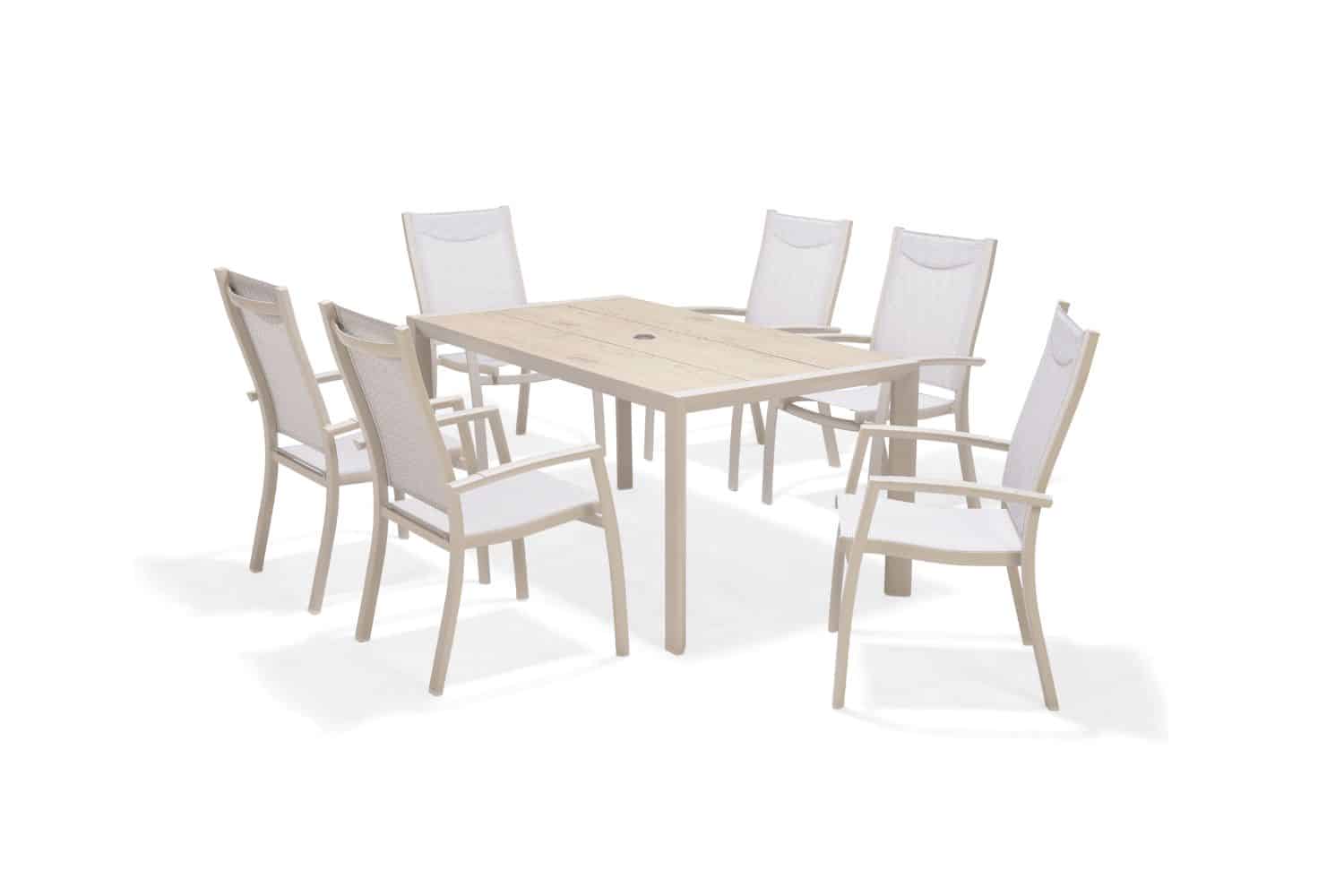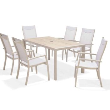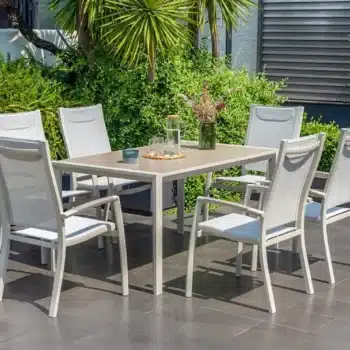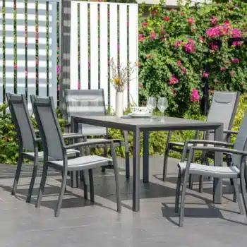 פינת אוכל לגינה מדגם אורבן 160 עם 6 כיסאות פנמה.