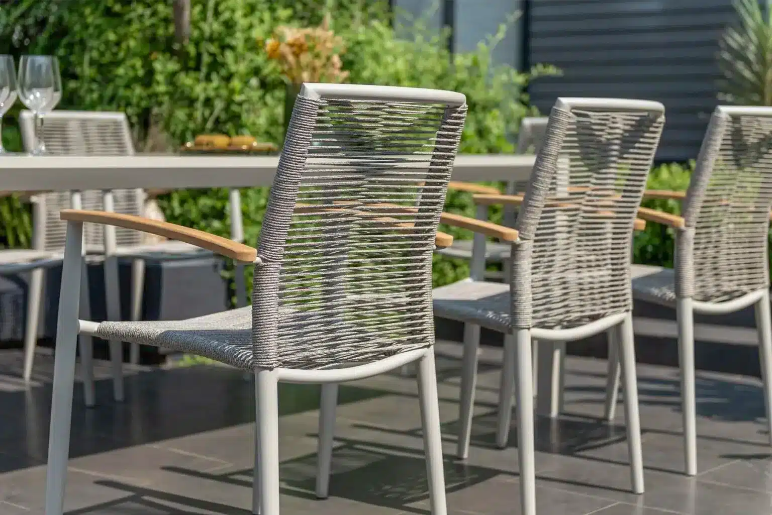 פינת אוכל לגינה מדגם אורבן 207 עם 6 כיסאות טופז חבלים.