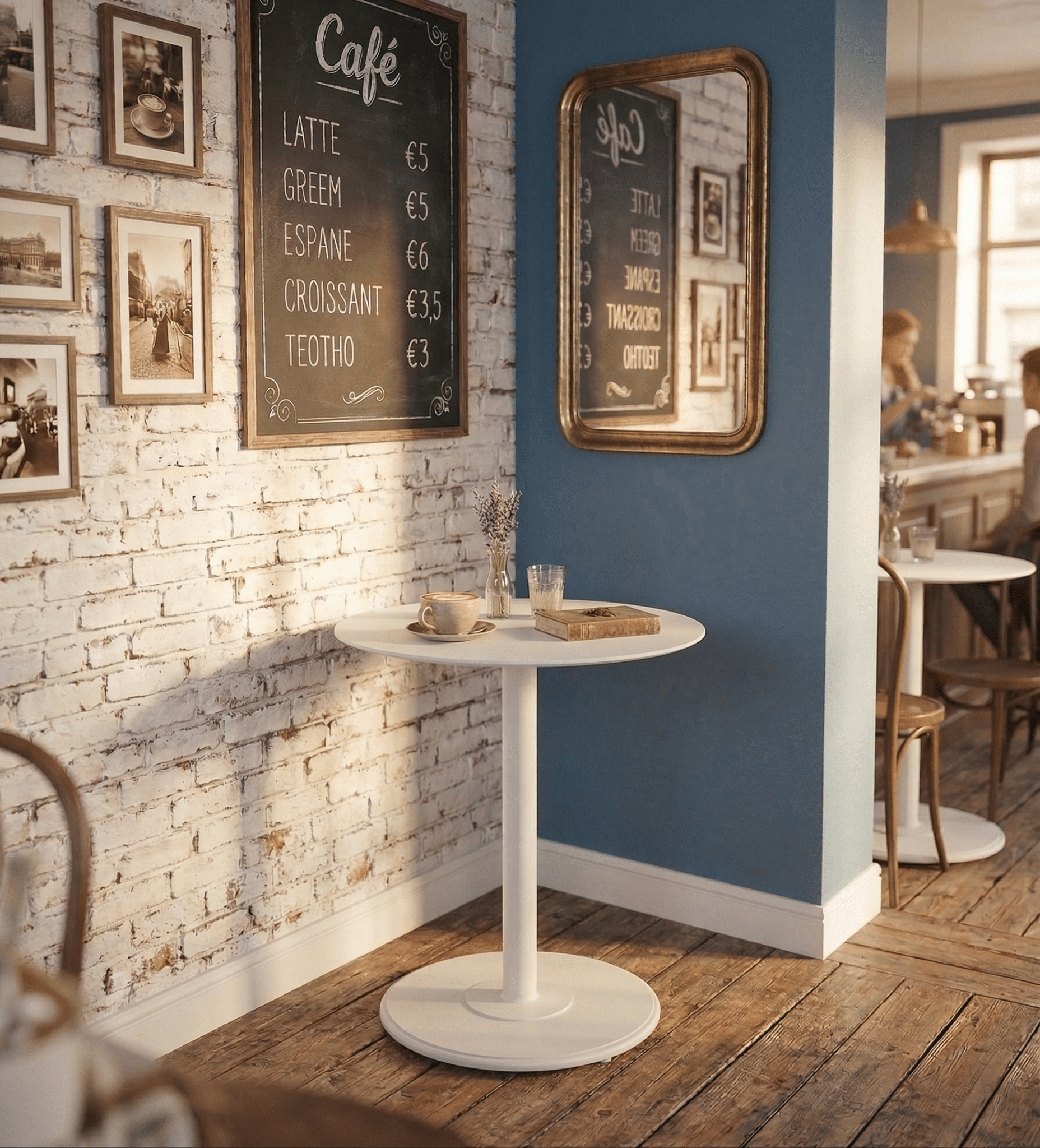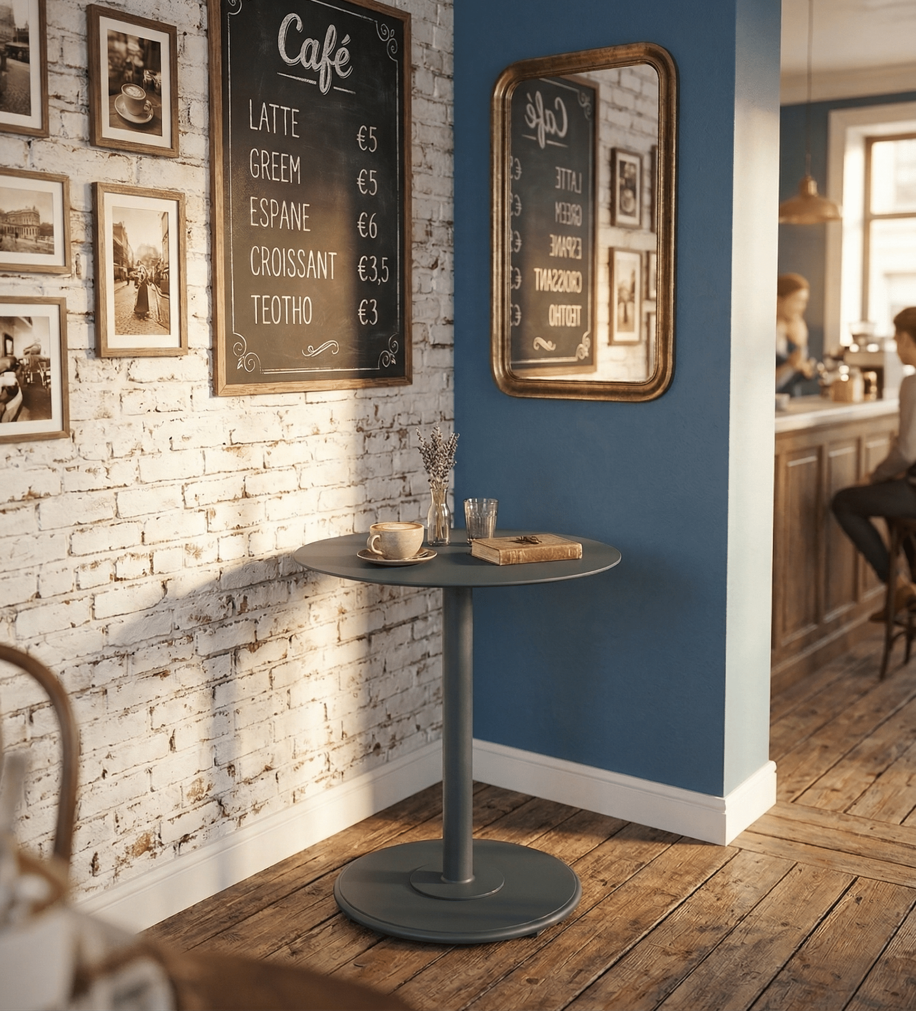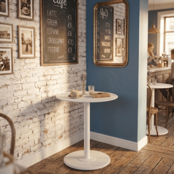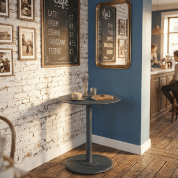 שולחן ביסטרו מעוצב הבנוי מאלומיניום “אל חלד”.