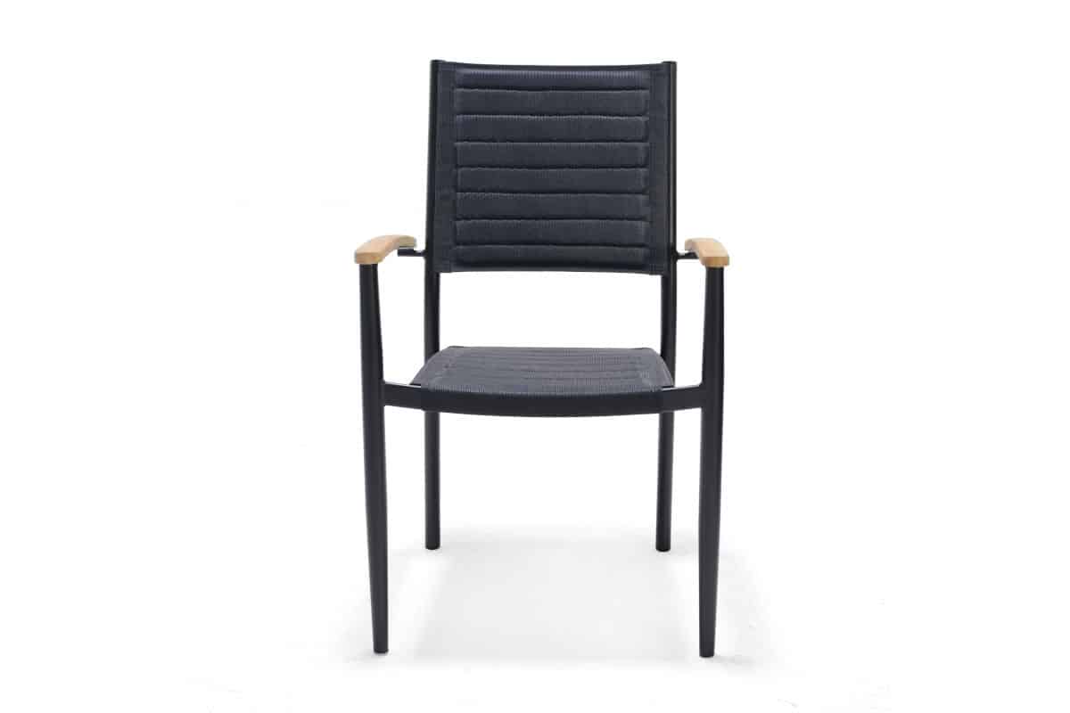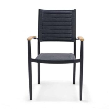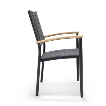 כיסא מעוצב ויוקרתי אשר בנוי משלדת אלומיניום “אל חלד” בשילוב משענות ידיים מעץ טיק אינדונזי.