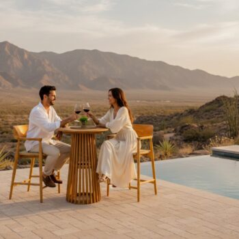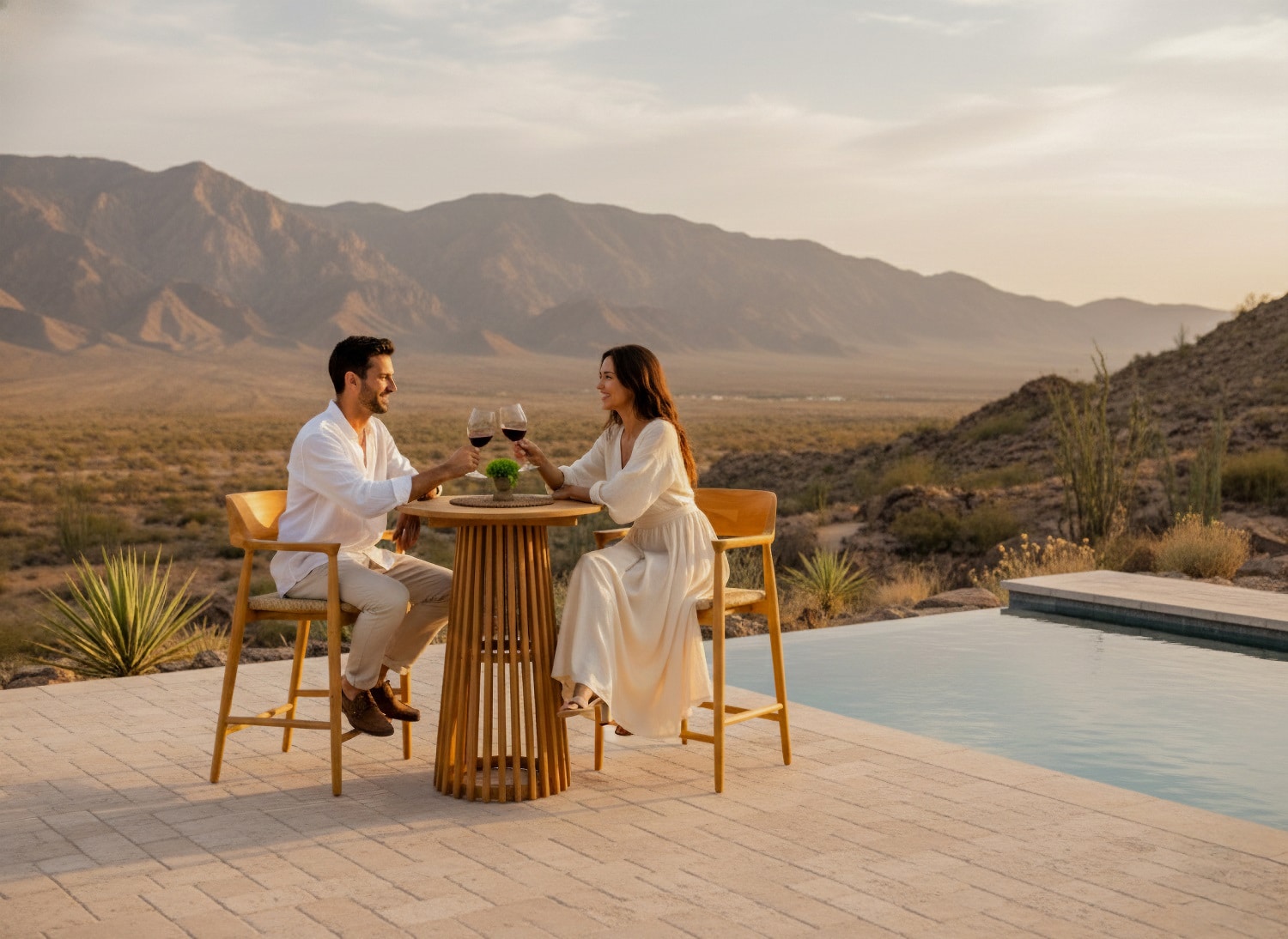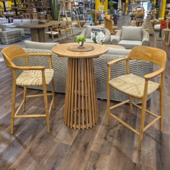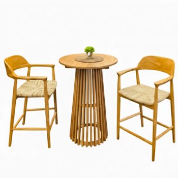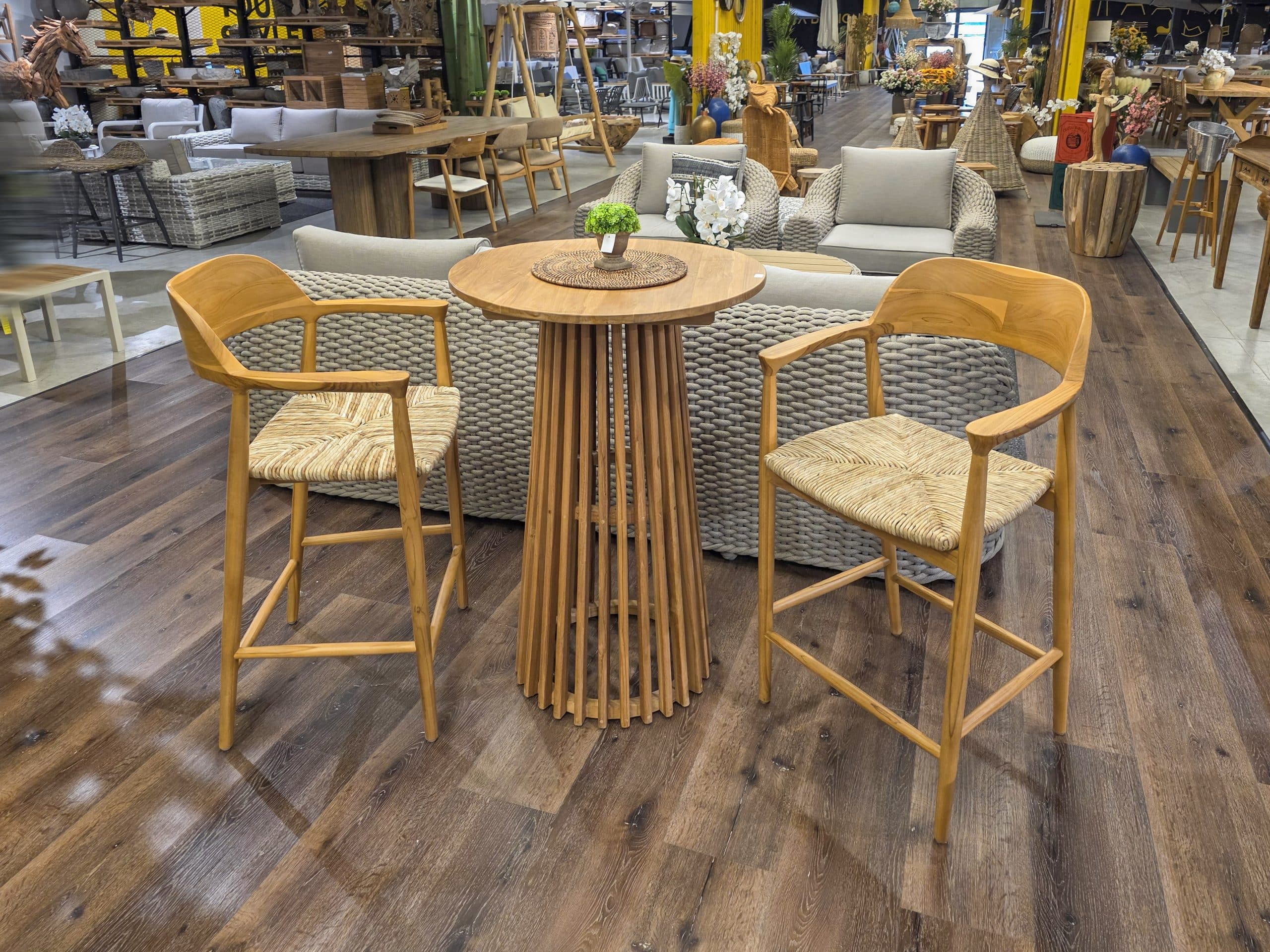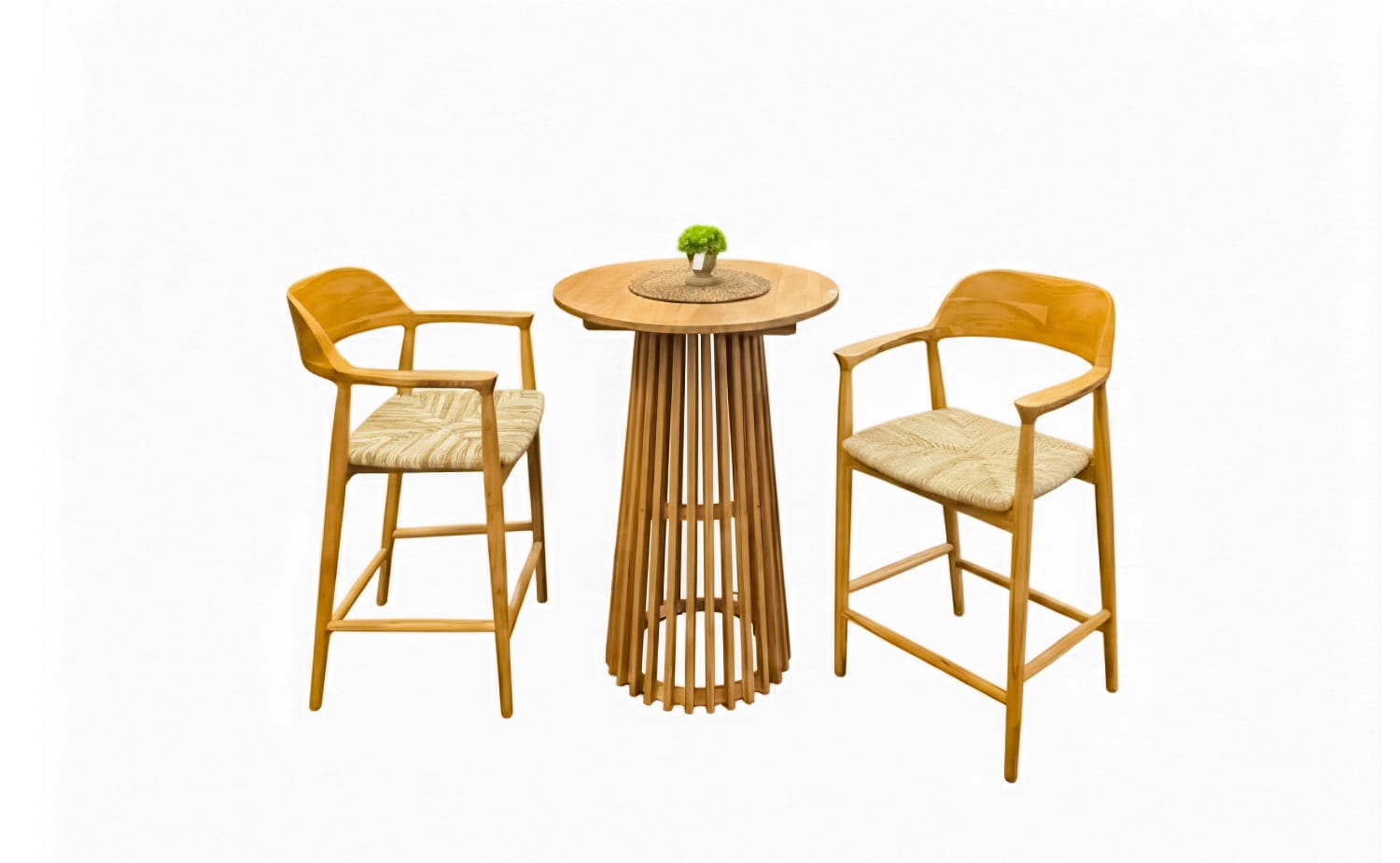 שולחן בר מעוצב דגם קנטנה בשילוב זוג כיסאות קנדי.