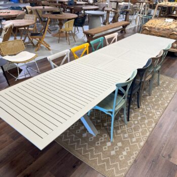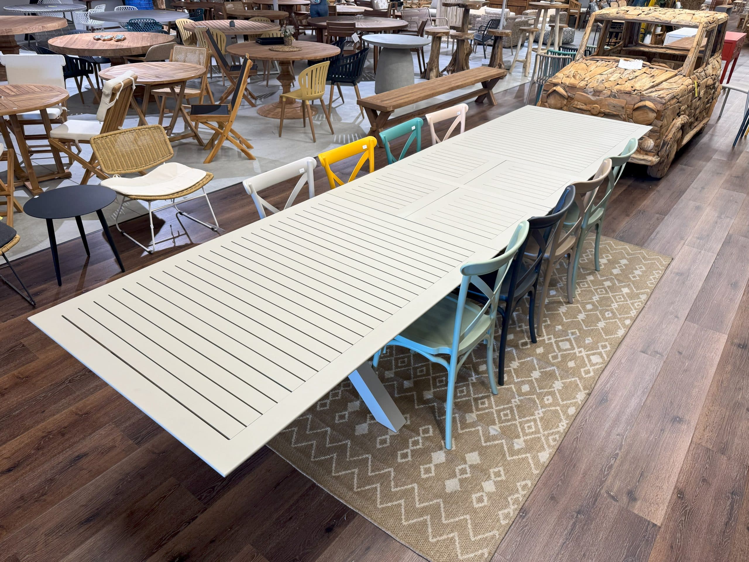 שולחן נפתח העשוי אלומיניום “אל חלד” במידה 295*100 ס”מ, נפתח ל-400 ס”מ.