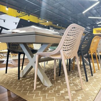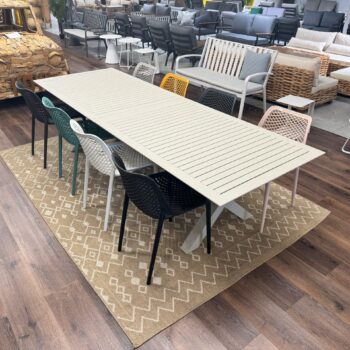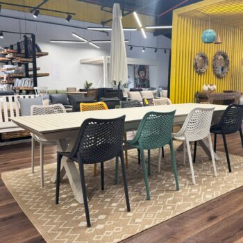 שולחן אלומיניום דגם דלהי 400 + 8 כיסאות מדגם פרייד במבחר צבעים לבחירה.